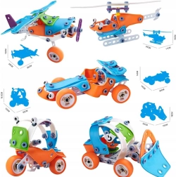 Šiame rinkinyje yra 118 detalių, leidžiančių sukurti įvairias transporto priemones, tokias kaip buldozeris, sraigtasparnis, lėktuvas ar kartingas. Jis padeda lavinti kūrybiškumą ir rankinius įgūdžius, leidžia vaikams atrasti statybos ir dizaino pasaulį su didele sėkme ir džiaugsmu.