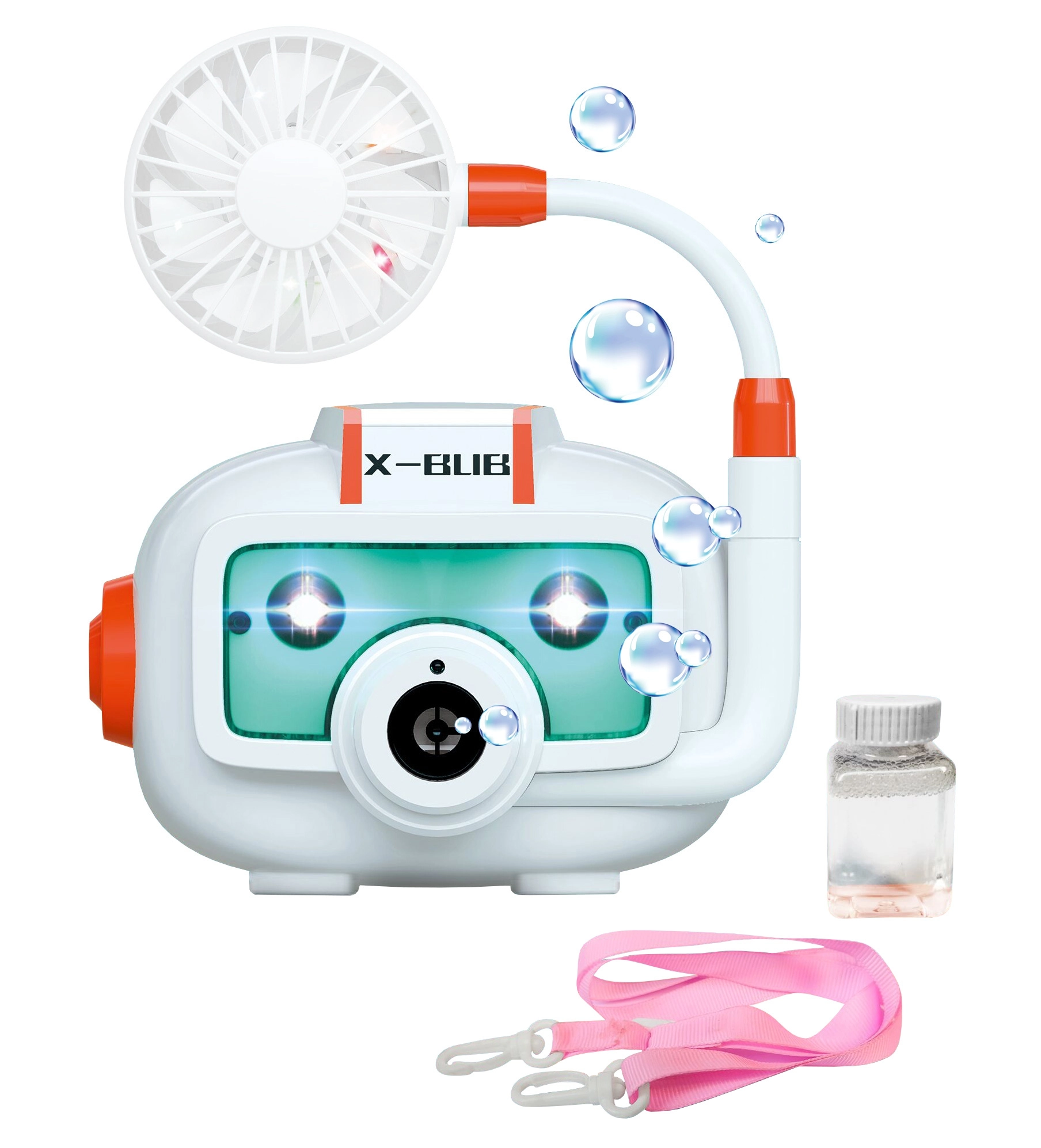 Žaislas lengvas, paprastai nešiojamas, o dėl pridedamos virvelės vaikai gali patogiai nešioti ant kaklo. Integruotas ventiliatorius padeda nupūsti burbulus toliau, tad mažoji publika sulauks išties įspūdingo reginio.