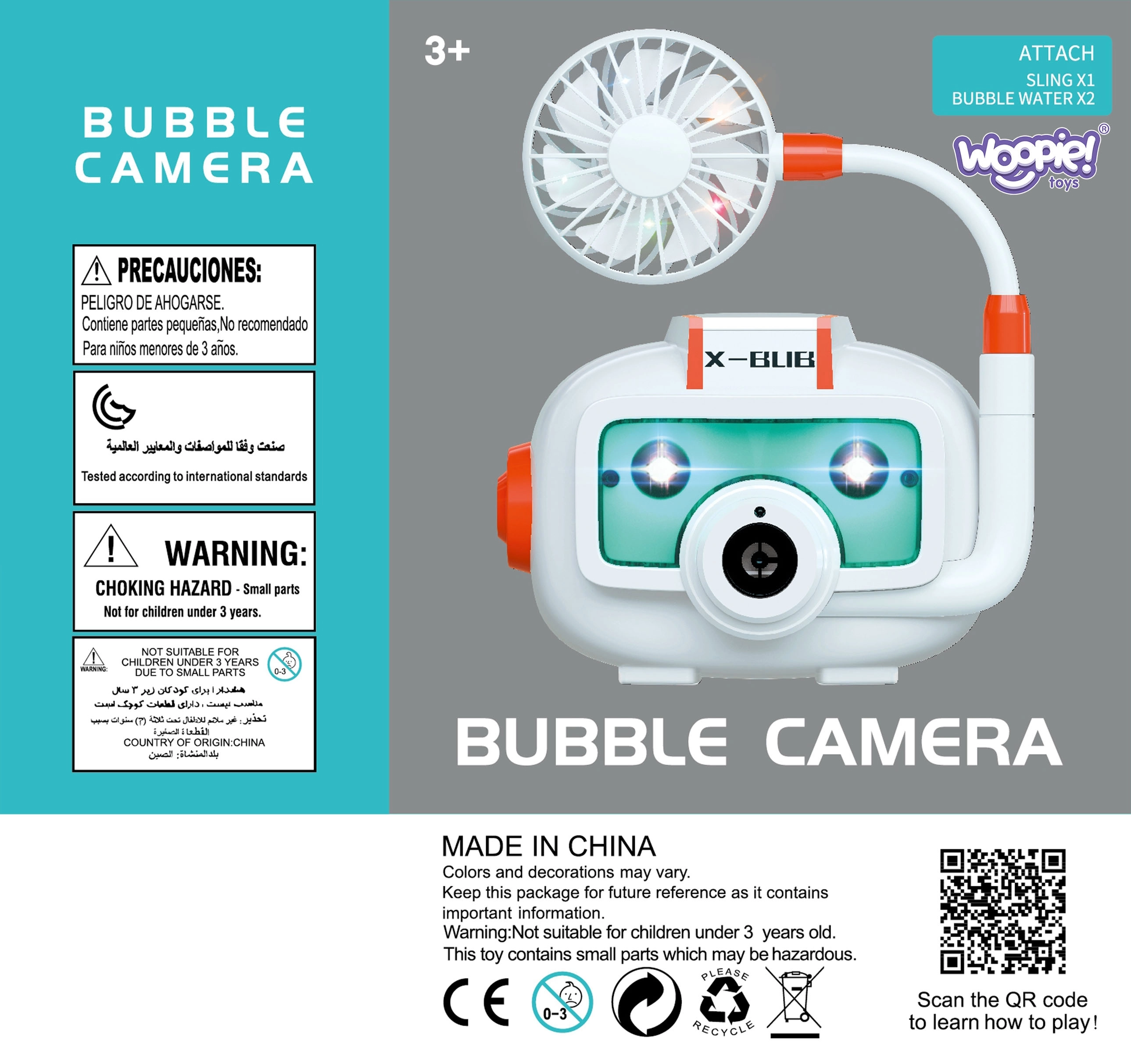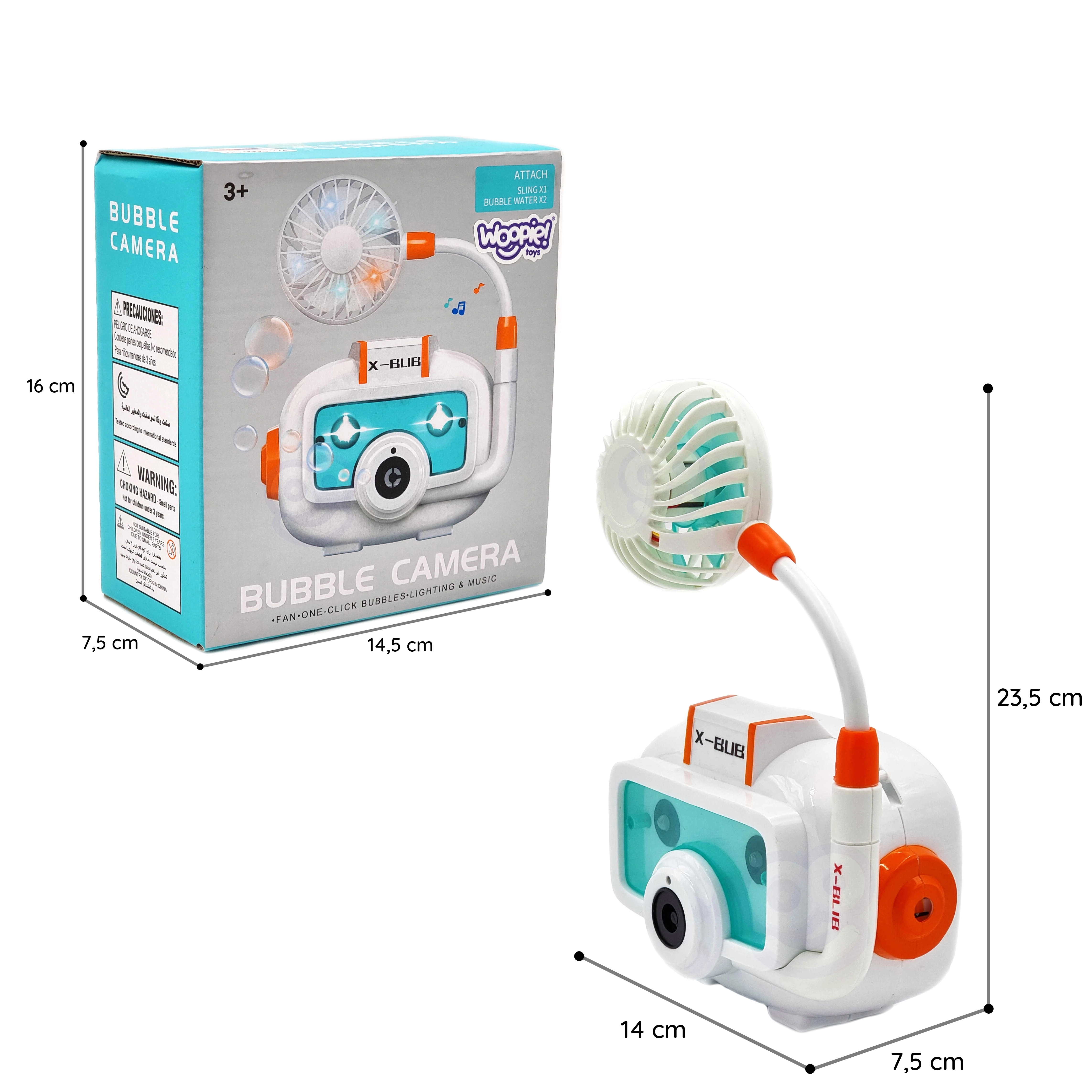 Pralinksminkite vaikus stilingu retro fotoaparato formos burbulų pūstuku. Tereikia papildyti tirpalą, įjungti ir pasileisti į spindinčių burbuliukų lietų. Spalvoti LED efektai, primenantys fotoaparato blykstę, ir maloni melodija suteikia kiekvienam žaidimui šventišką nuotaiką – namuose ir lauke.