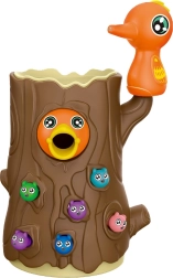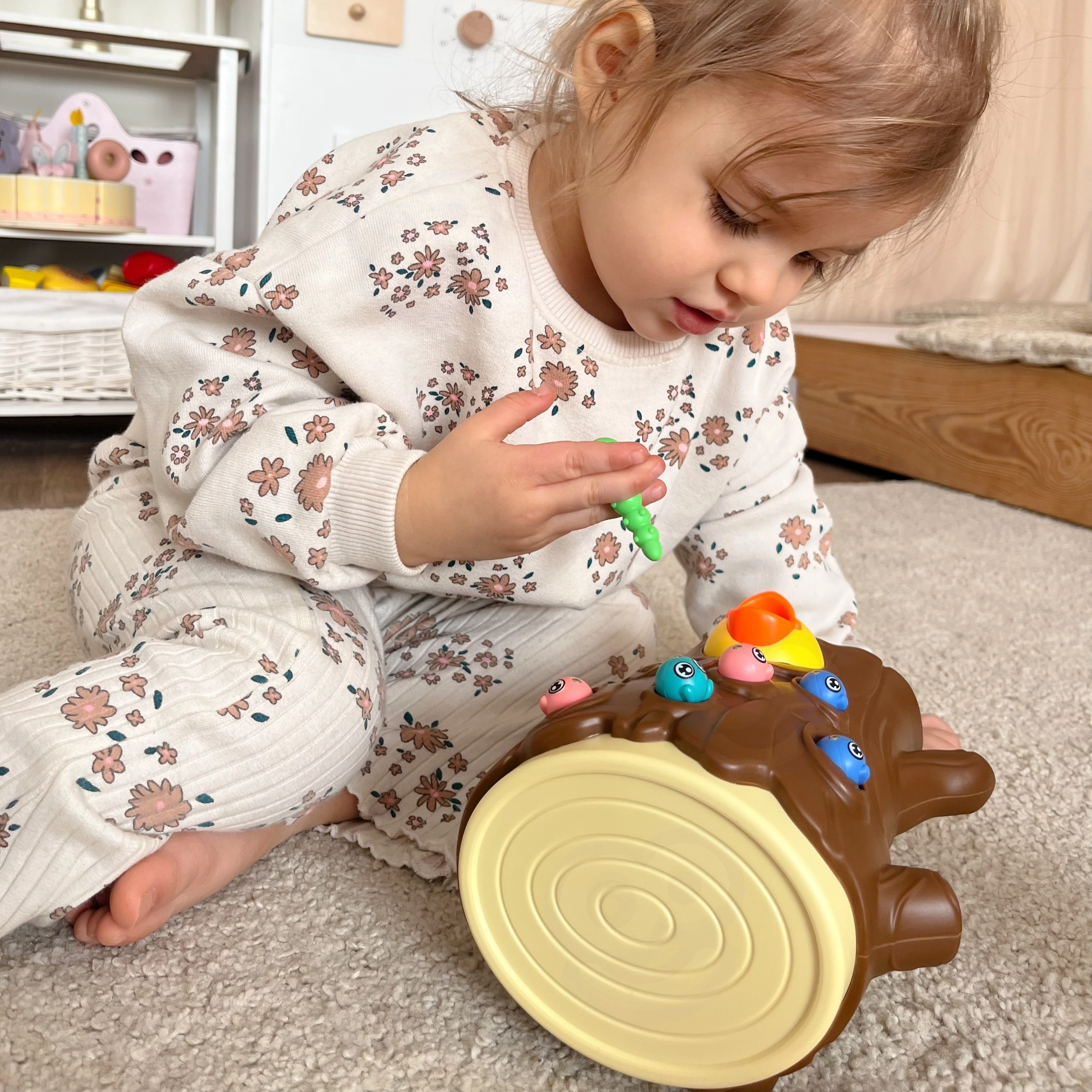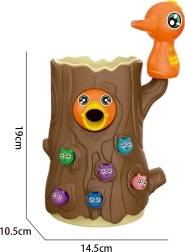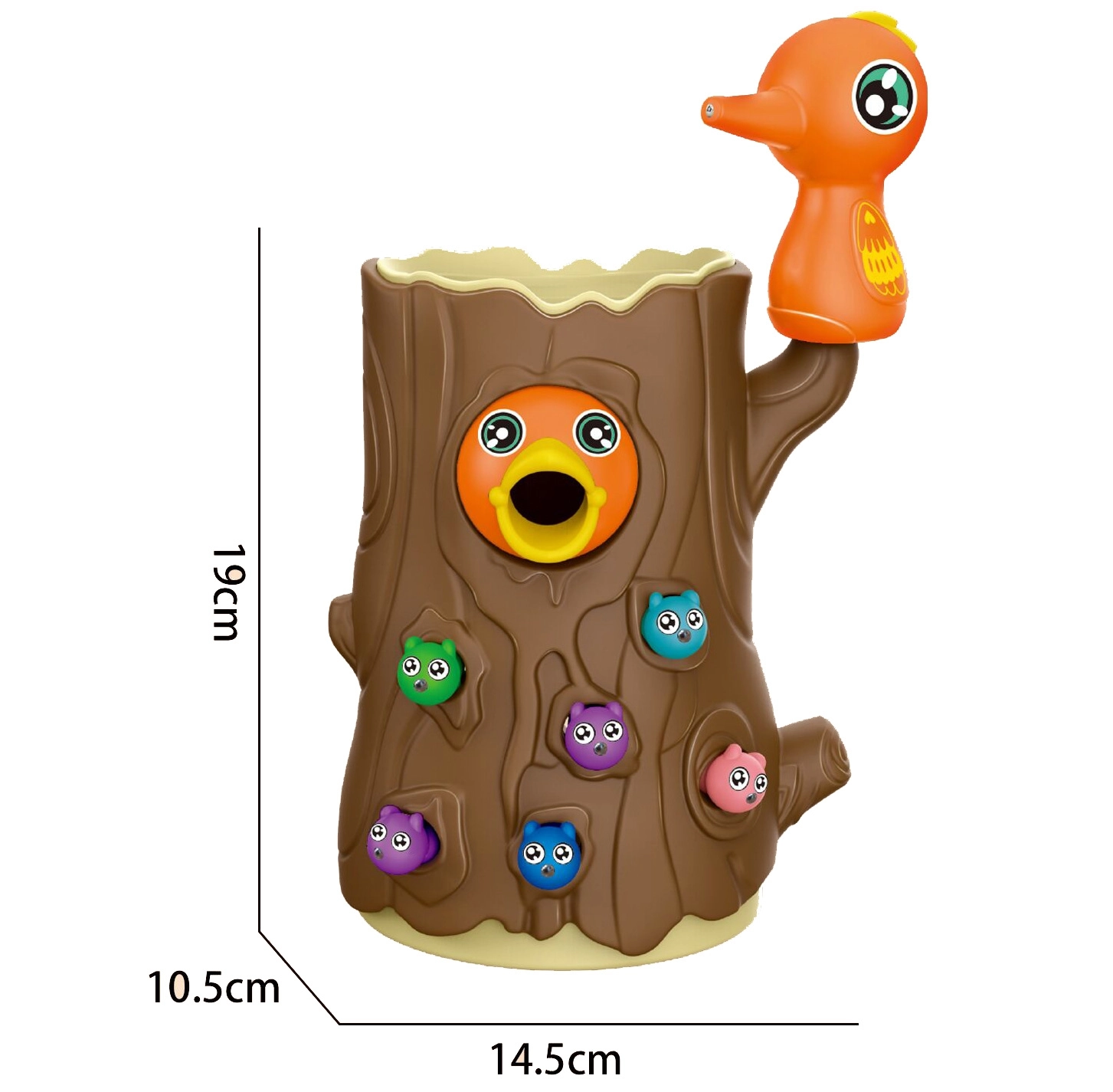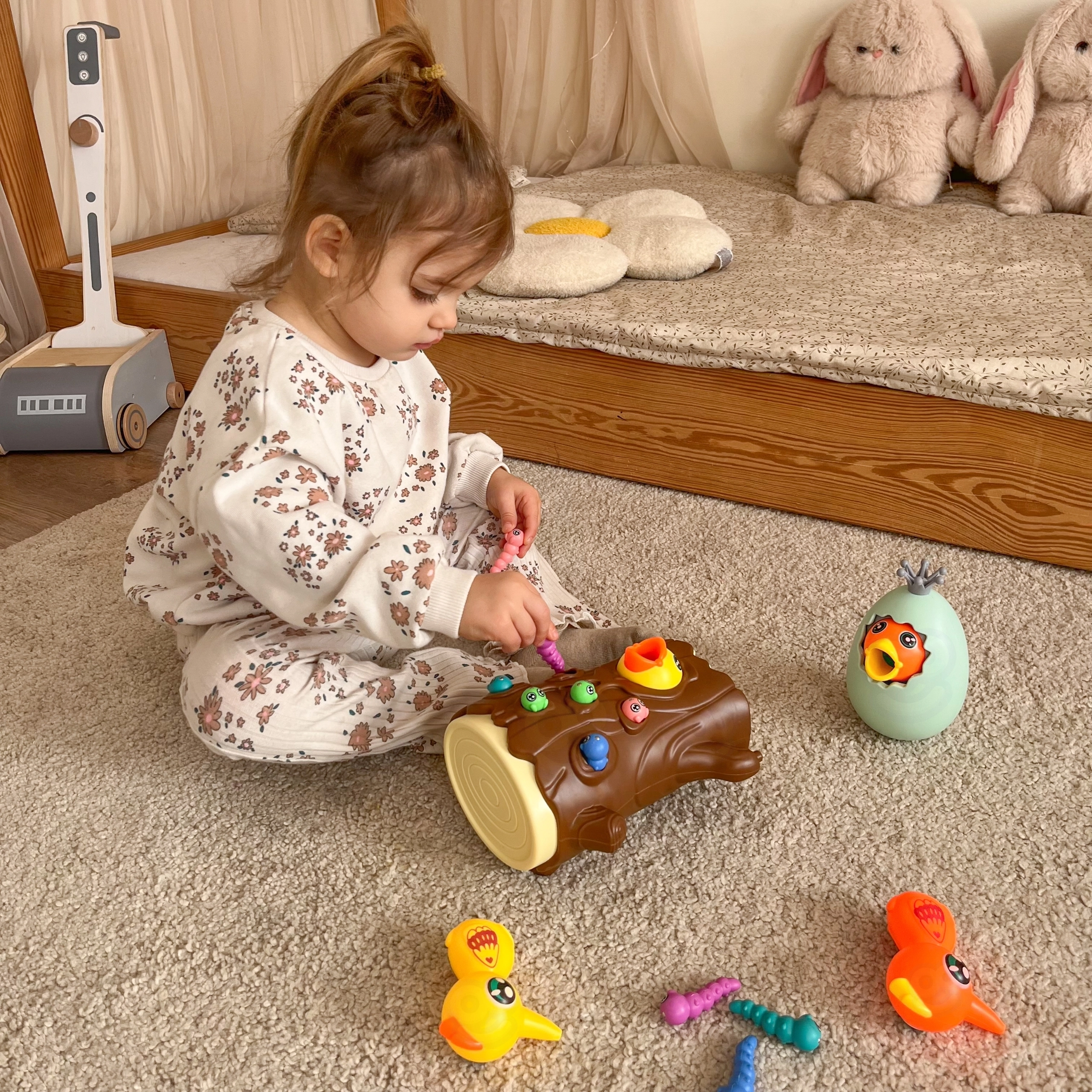 Smagus magnetinis žaidimas 3 viename iš WOOPIE sujungia mokymąsi per žaidimą ir šeimos pramogas. Vaikai su magnetiniais snapeliais „gaudo“ kirmėlytes ir maitina paukščiuką kelmo viduje, taip lavindami smulkiąją motoriką, akių–rankų koordinaciją ir susitelkimą. Kiaušinuką galima naudoti kaip taupyklę ir kaip virstantį žaisliuką, žaidimas puikiai tinka dviem žaidėjams ir skatina kantrybę bei tikslumą.