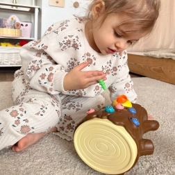 Magnetinis žaidimas „Pagauk kirmėlytę“ suteikia vaikams nuo 3 metų žaismingą būdą lavinti įgūdžius. Užduotis – surasti spalvotas kirmėlytes kelme ir magnetiniais mediniais „geniais“ pernešti jas alkano paukščiuko snapeliui. Paprastos taisyklės lengvai įtraukia tėvus ir brolius ar seses, todėl smagiai praleisite laiką kartu.