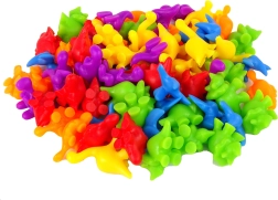 - - Įvairiaspalviai dinozaurai (po 12 vnt. kiekvienos spalvos: žalia, geltona, violetinė, mėlyna, raudona, oranžinė)