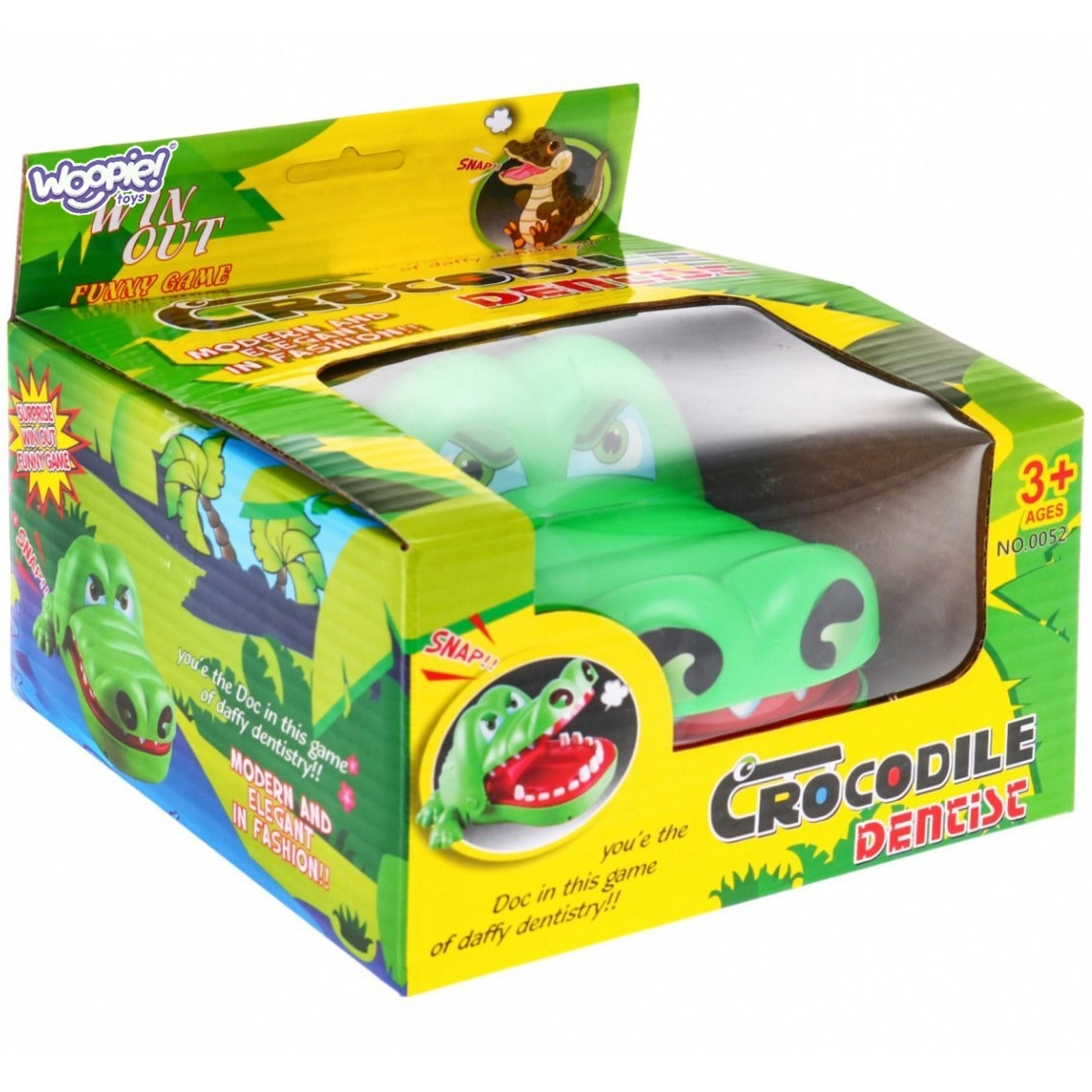 Linksmas šeimos žaidimas su krokodiliuku iš prekės ženklo WOOPIE, kuriame mažieji odontologai paeiliui spaudo dantukus – vienas yra „skaudantis“ ir sukelia greitą nasrų susičiaupimą! Žaidimas turi paprastas taisykles, suteikia daug juoko ir kartu lavina pastabumą, refleksus ir susikaupimą. Saugus atlikimas be aštrių briaunų ir spalvingas dizainas daro jį puikia dovana vaikams nuo 3 metų.