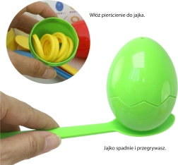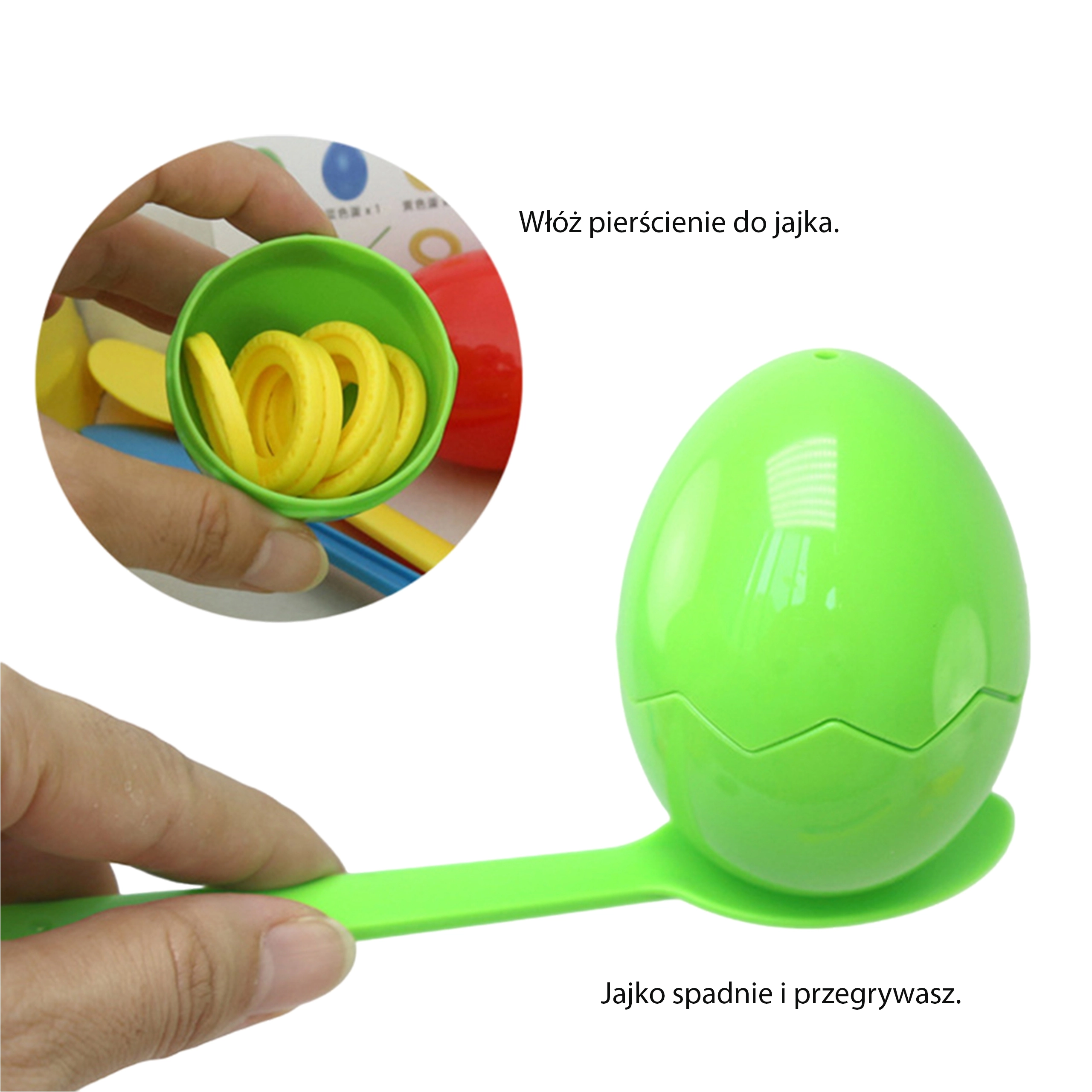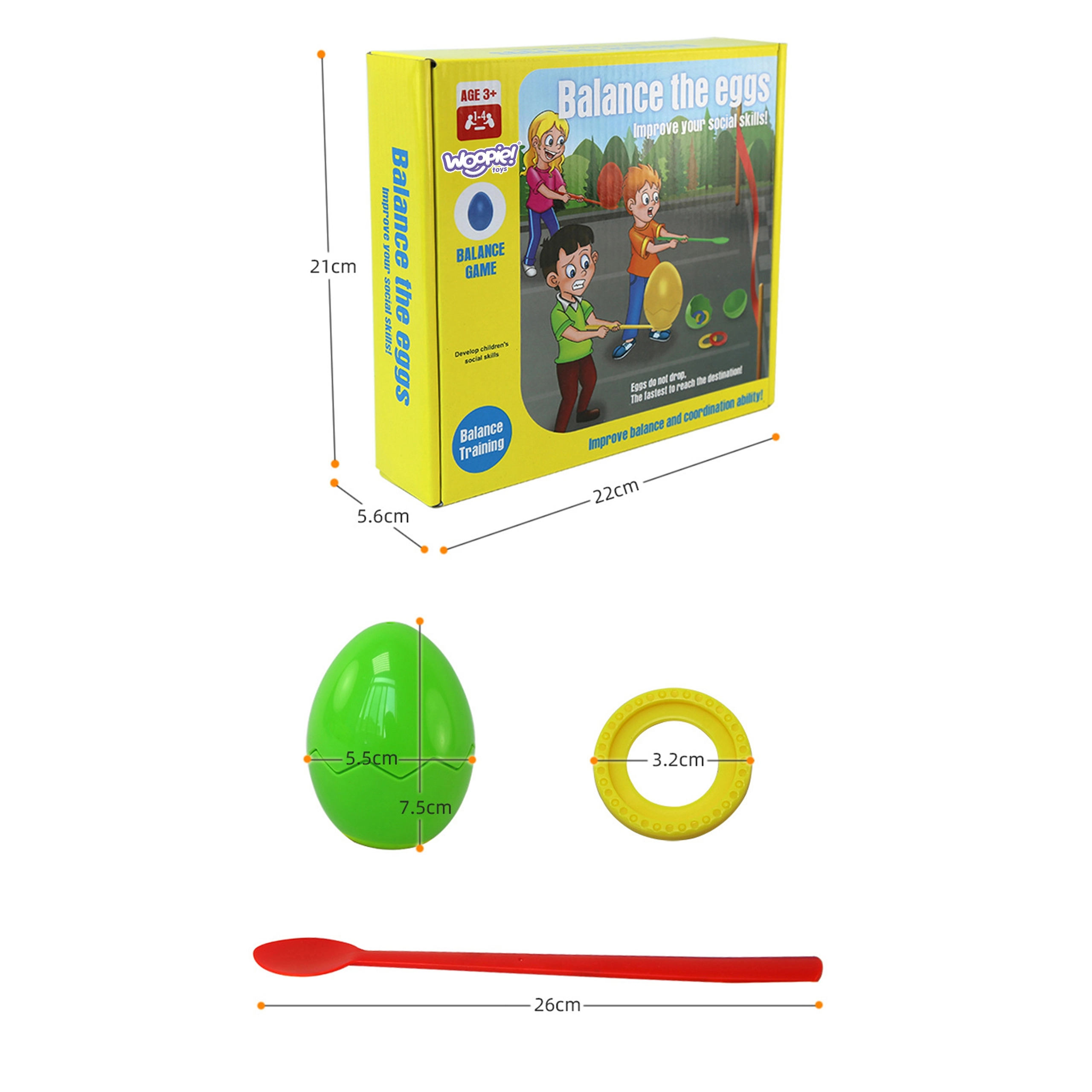 Woopie vikrumo žaidimas Balansuojantis kiaušinis – puikus būdas sudominti vaikus tiek individualiai, tiek grupėje. Šis žaidimas gerina judesių koordinaciją ir lankstumą, nes reikia išlaikyti kiaušinį ant lazdelės ir judėti su juo.