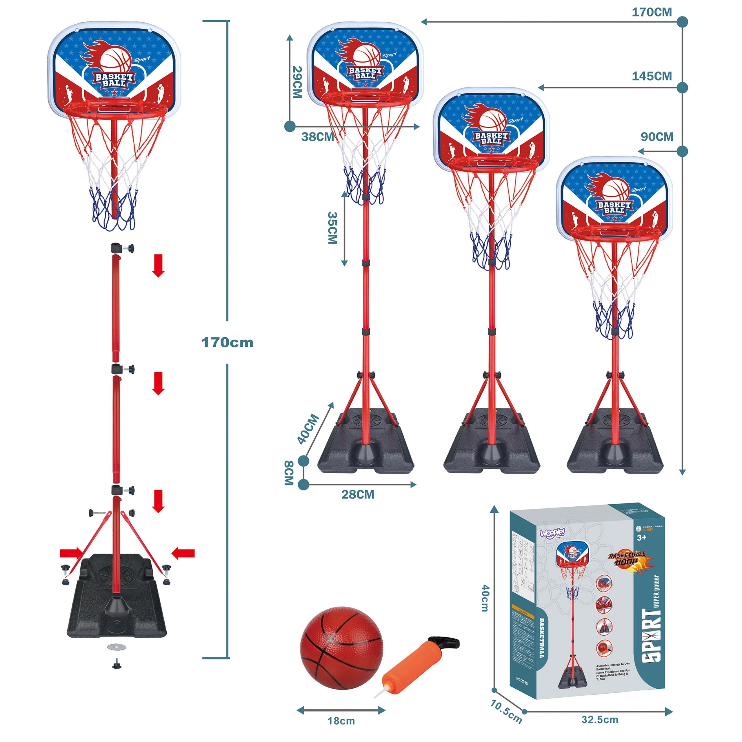 Stovas pagamintas iš patvarių ir saugių medžiagų, draugiškų aplinkai. Stabilus pagrindas suteikia užtikrintumo žaidžiant, o pridėtas krepšinio kamuolys ir pompikė leidžia pradėti iš karto. Puikus būdas motyvuoti vaikus sportuoti, gerinti koordinaciją ir taiklumą.