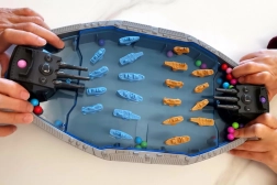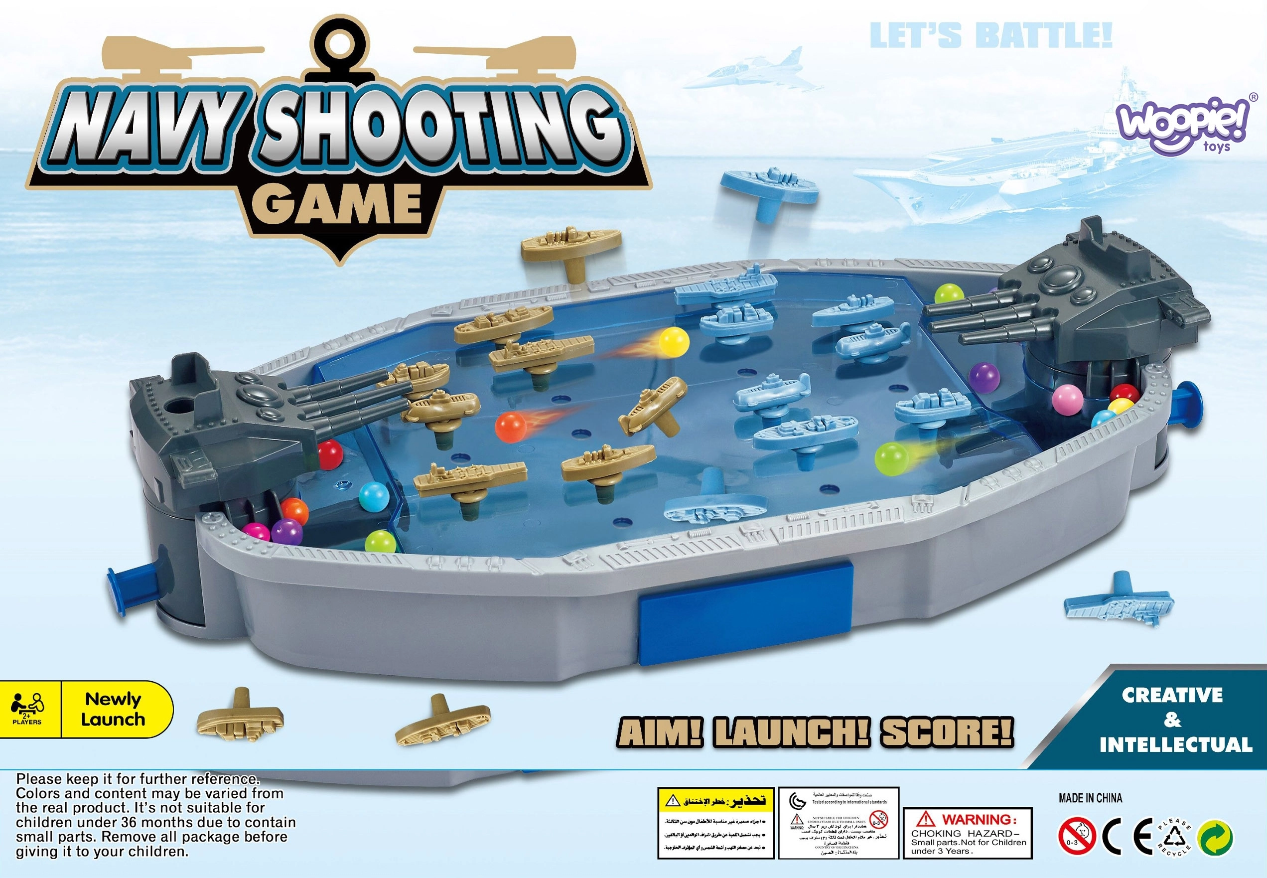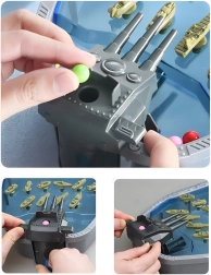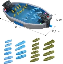 Spalvingi laivai ir povandeniniai laivai ant žaidimo lentos kuria realistišką mūšį, kuris įtraukia vaikus nuo pirmojo šūvio.