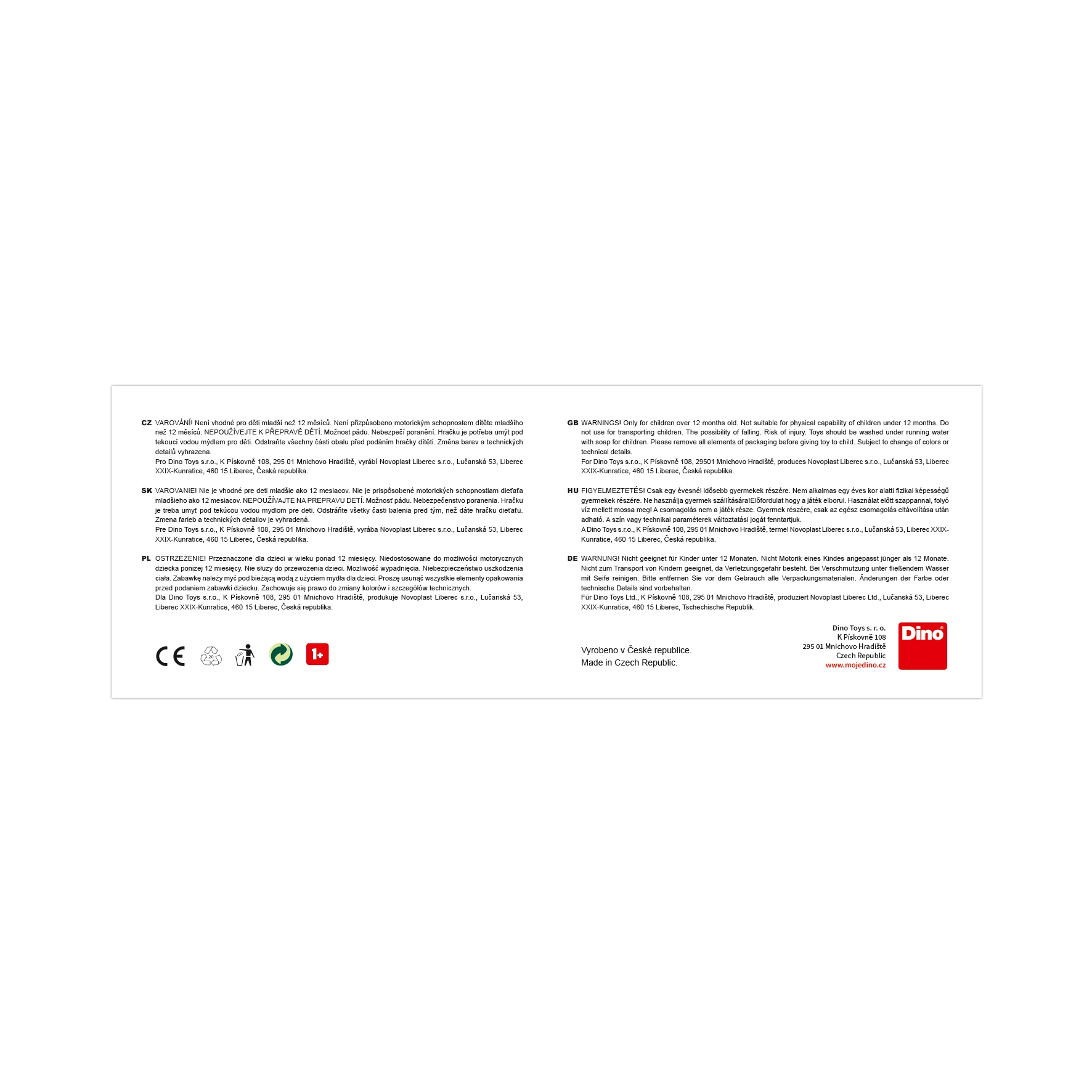 Žaislas pagamintas nenaudojant ftalatų ir atitinka aukštus Čekijos gamintojų kokybės standartus. Bendrovė Dino Toys yra žinoma bendradarbiavimu su pripažintais dailininkais ir inžinieriais, kas garantuoja kokybišką kiekvieno gaminio apdirbimą.