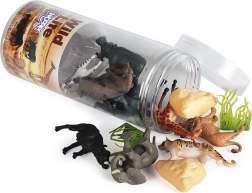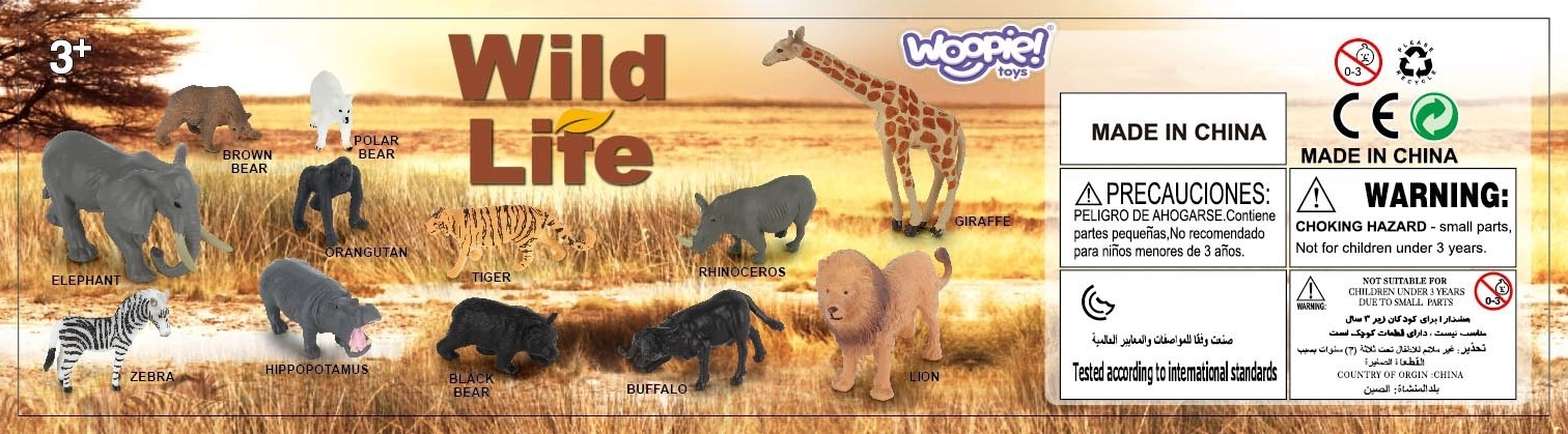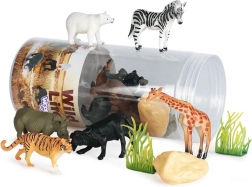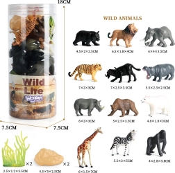 - Komplektas: 12 laukinių gyvūnų figūrėlių + 2 augalai + 2 uolos (iš viso 16 dalių)