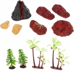 Įvairus dinozaurų, medžių, akmenų ir lavos rinkinys leidžia kurti detalias scenas ir žaismingai mokytis rūšių pavadinimų.