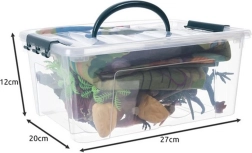 Šis turtingas dinozaurų rinkinys suteikia vaikams viską ilgoms žaidimo valandoms: 12 dinozaurų figūrėlių (pvz., T-Rex, Triceratops, Spinozauras), 7 aplinkos elementus (lava, lizdas su kiaušiniais, akmenys) ir 4 medžius. Taip pat pridedamas didelis kilimėlis su dinozaurų parko motyvu, kuris sukuria realistišką aplinką vaizduotės istorijoms.