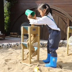 Stabili kokybiškos medienos konstrukcija atlaiko kasdienį žaidimą smėlio dėžėje. Saugus dizainas ir kruopštus apdirbimas daro jį puikiu pasirinkimu namams ir edukacinėms erdvėms – vaikų darželiams, žaidimų kambariams ir mokyklų aikštelėms.