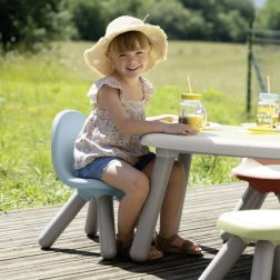 Puikus pasirinkimas vaikų kambariams, žaidimų erdvėms, darželiams, taip pat sodui ar terasai – patogi sėdėjimo vieta žaidimams, kūrybai ir užkandžiams.