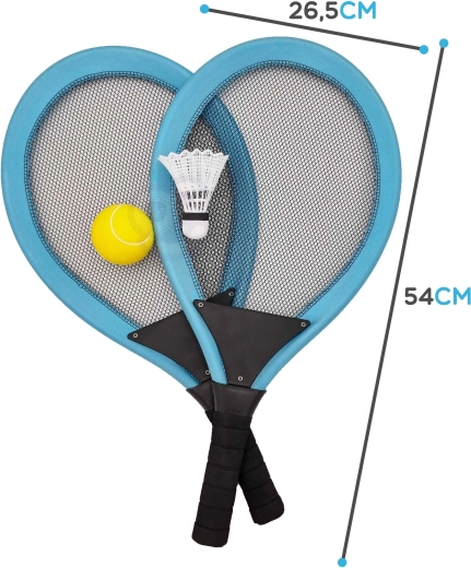 Lengvas ir smagus WOOPIE rinkinys mažiems ir dideliems judesio entuziastams. Dvi didelės raketės su elastingu tinkliuku, geltonas putų kamuoliukas ir plastikinis plunksniukas palaiko aktyvų žaidimą lauke, lavina motoriką ir koordinaciją. Dėl patogaus suėmimo vaikų rankoms ir didesnės raketės galvos pataikyti lengva, o žaidimas natūraliai teikia džiaugsmą.