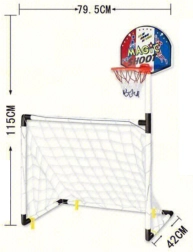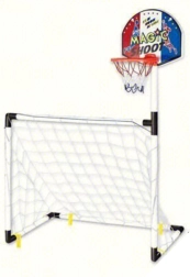 - 2 viename – pilnas sportinis rinkinys: krepšinis + futbolo vartai + kamuolys