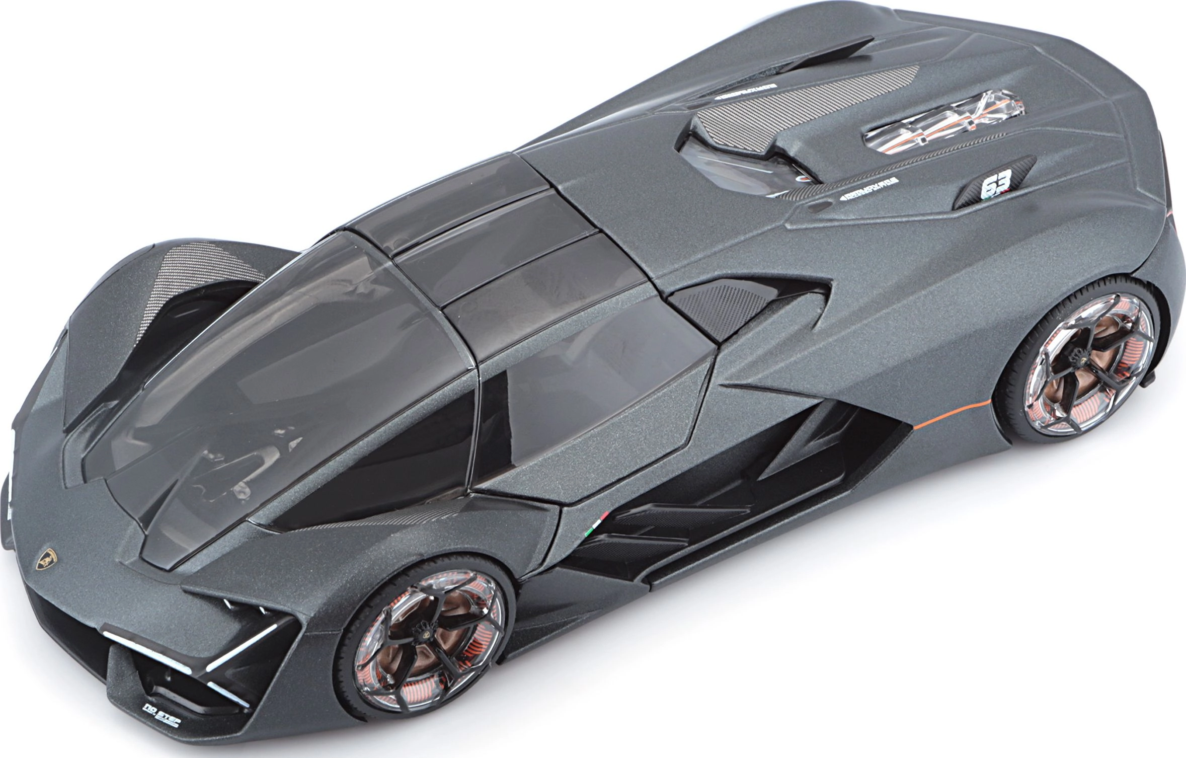 Metalinis modeliukas Bburago 1:24 – tai tikslus Lamborghini Terzo Millenio automobilio modelis elegantiškos pilkos spalvos, sužavėsiantis kiekvieną kolekcionierių ir sportinių automobilių gerbėją.