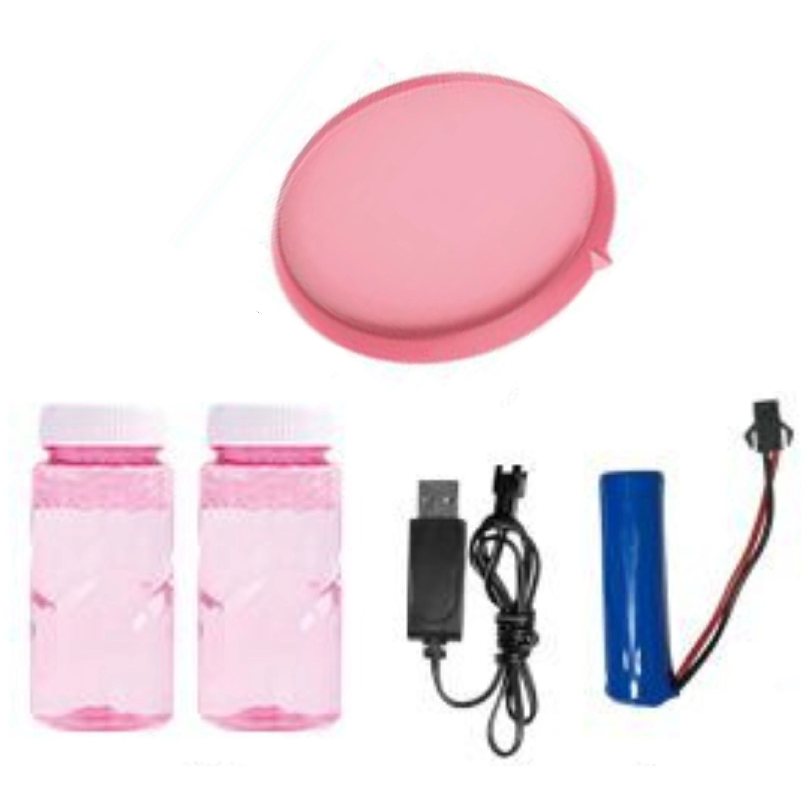 Rinkinyje rasite 2 buteliukus su tirpalu, lėkštelę, akumuliatorių ir USB laidą – viską, ko reikia iškartinei pramogai.