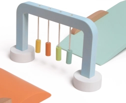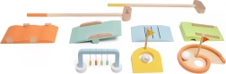 Šis kokybiškas medinis mini golfo rinkinys pagamintas iš netoksiškos ir patvarios medienos. Dėl lengvo surinkimo galite žaisti bet kur – svetainėje, vaiko kambaryje ar sode. Spalvingos kliūtys ir paprastos taisyklės pradžiugins tiek pradedančiuosius, tiek mažus sportininkus.