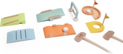 Rinkinyje yra 2 golfo lazdos, 2 kamuoliukai, 2 duobutės su vėliavėlėmis ir 5 originalios kliūtys, su kuriomis vaikai kuria savo trasas. Žaidimas skatina bendradarbiavimą, kantrybę ir fizinį aktyvumą.