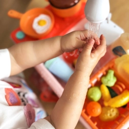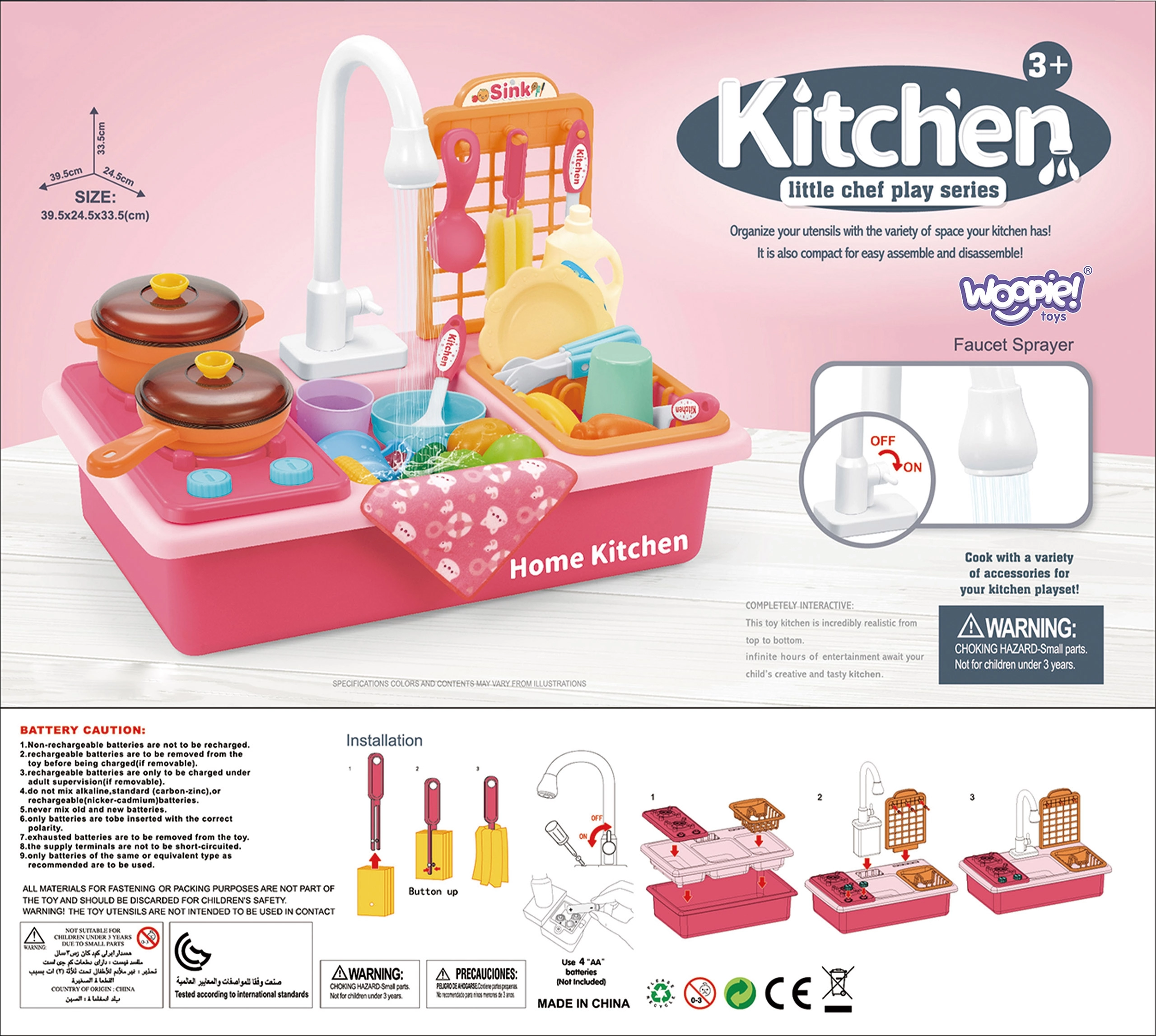 Žaislas idealiai tinka vaikams nuo 3 metų ir yra aprūpintas daugybe priedų, įskaitant puodus, dubenėlius ir įvairų plastikinį maistą. Kriauklę taip pat galima naudoti šių priedų laikymui, o tai padeda palaikyti tvarką žaidimo metu ir po jo. Visa komplekto spalvinė gama suderinta rožiniais tonais, o ryškios spalvos suteikia daug linksmybių.