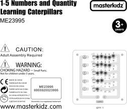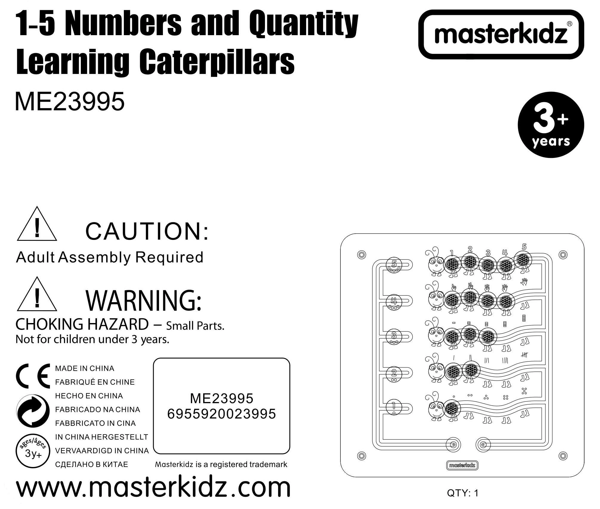 Ši tvirta medinė sieninė MASTERKIDZ lenta vaizduoja penkias spalvotas vikšreles ir 15 slankiojančių „brangakmenių“ penkiomis spalvomis. Vaikai gali jais judinti vingiuotais takeliais, tačiau jų išimti neįmanoma, todėl žaidimas namuose ir darželiuose yra saugus ir ilgaamžis. Lenta rodo penkis skaičių 1–5 pavaizdavimo būdus: skaitmenys, pirštai, brūkšniai, blokai ir taškai.