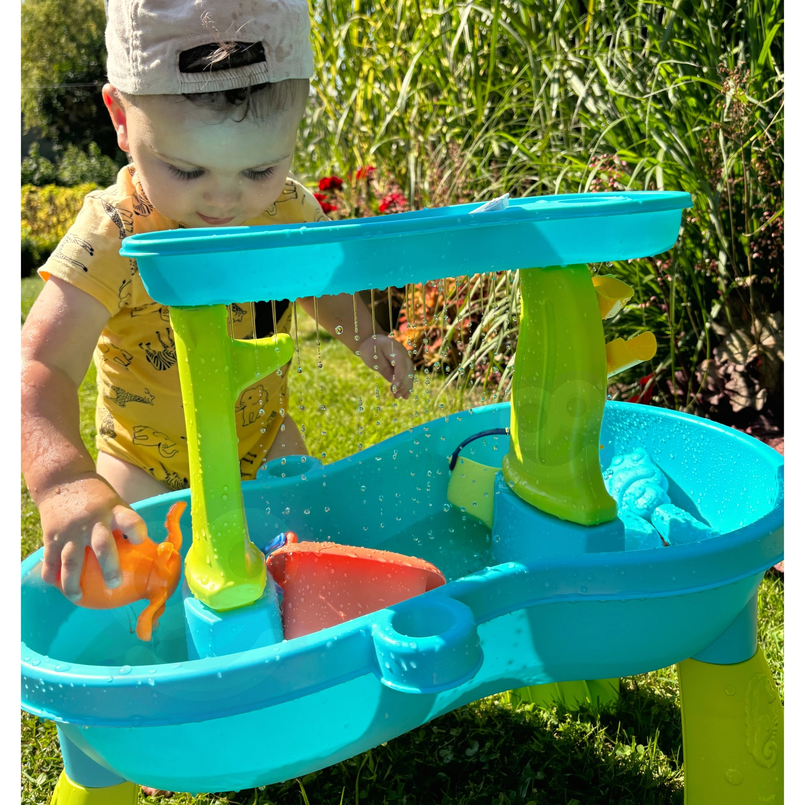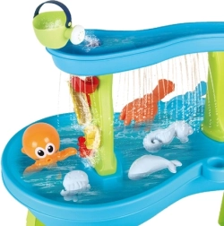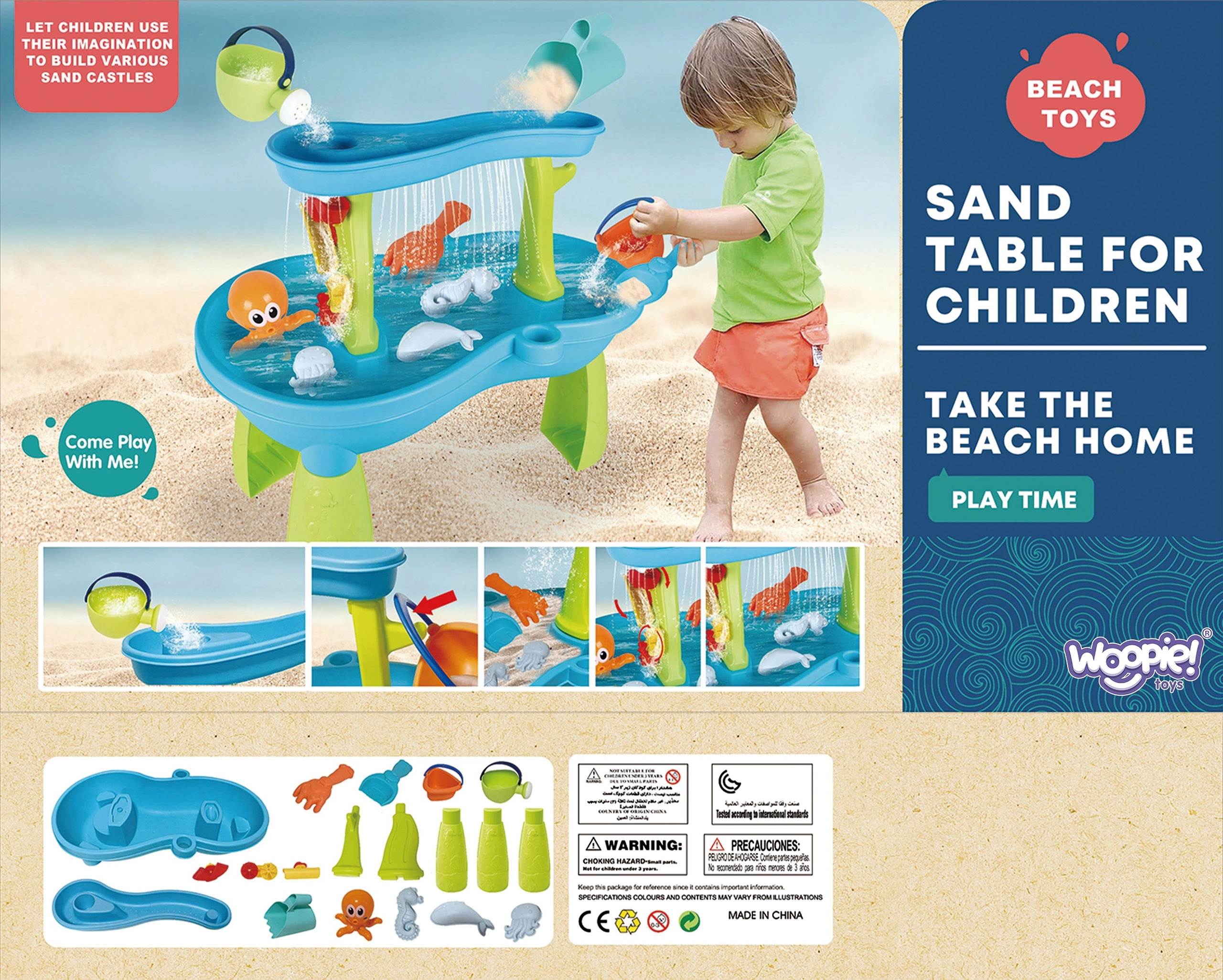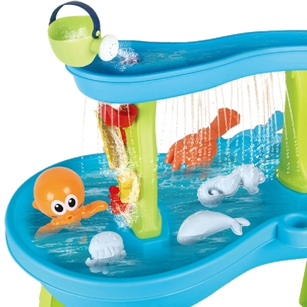 WOOPIE prekės ženklo vandens stalas Aštuonkojis suteikia unikalią vandens ir smėlio patirtį vaikams. Dėl 18 priedų, tokių kaip 3 formelės, aštuonkojis, laistytuvas, krepšelis, smėlio semtuvėlis ir 2 mentelės, vaikai gali mėgautis beribėmis žaidimo galimybėmis. Vanduo, pilamas į viršutinę stalo dalį, gali tekėti per dugno angas arba sukti vandens malūnėlius. Puikiai tinka žaisti namuose ir lauke!