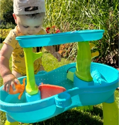 Įvairios tekstūros ir stimuliuojantys elementai skatina vaikus tyrinėti vandens ir smėlio pasaulį.