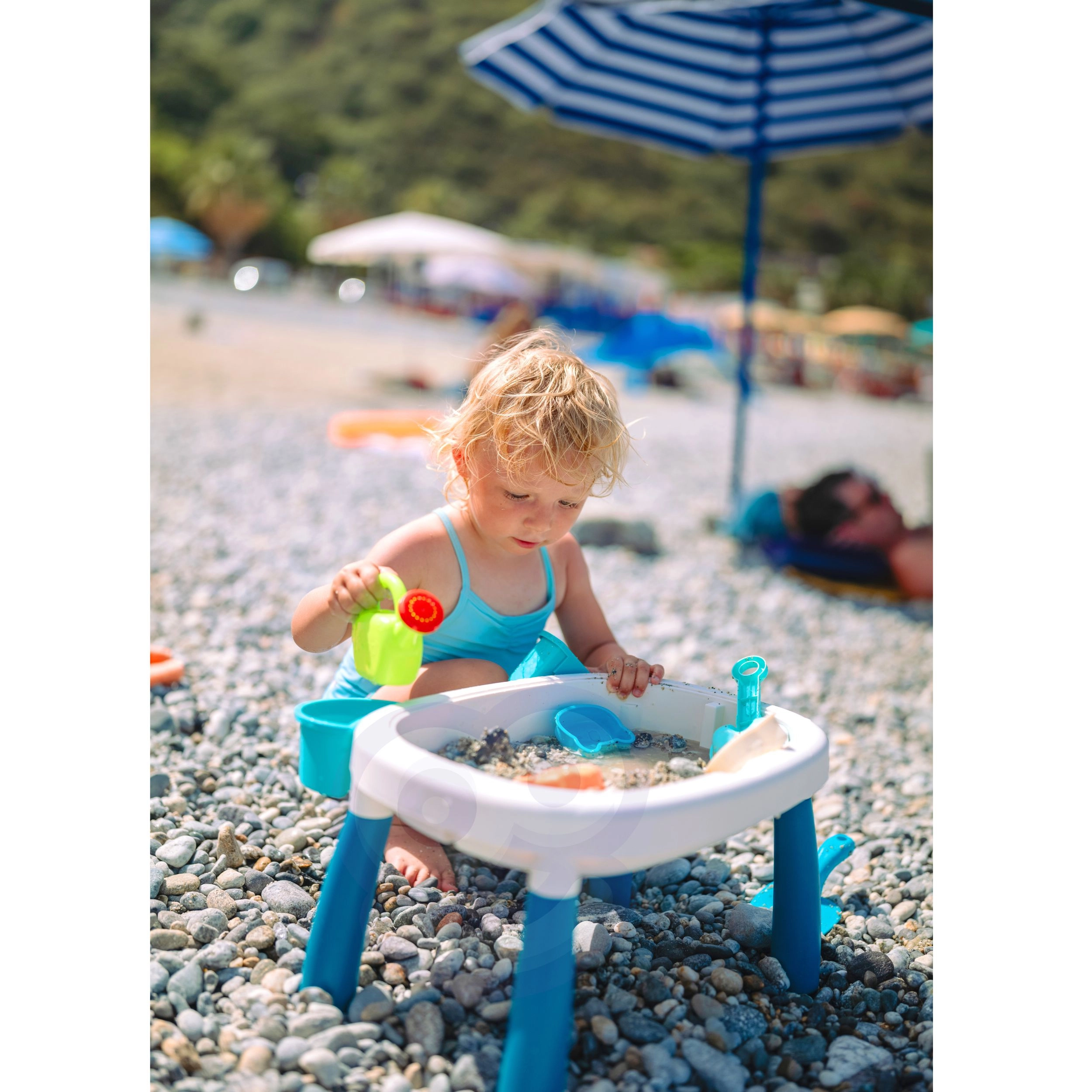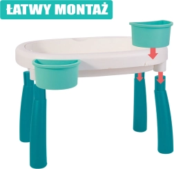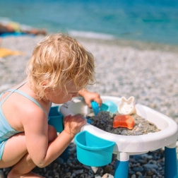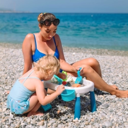 Atraskite universalų vaikišką 2 viename vandens ir smėlio staliuką, kuris kiekvieną popietę pavers mažomis atostogomis. Dvi atskiros talpos leidžia derinti vandens žaidimus su smėlio veiklomis, o stabilios kojelės ir patvarus plastikas užtikrina saugų žaidimą namuose, sode ar paplūdimyje.
