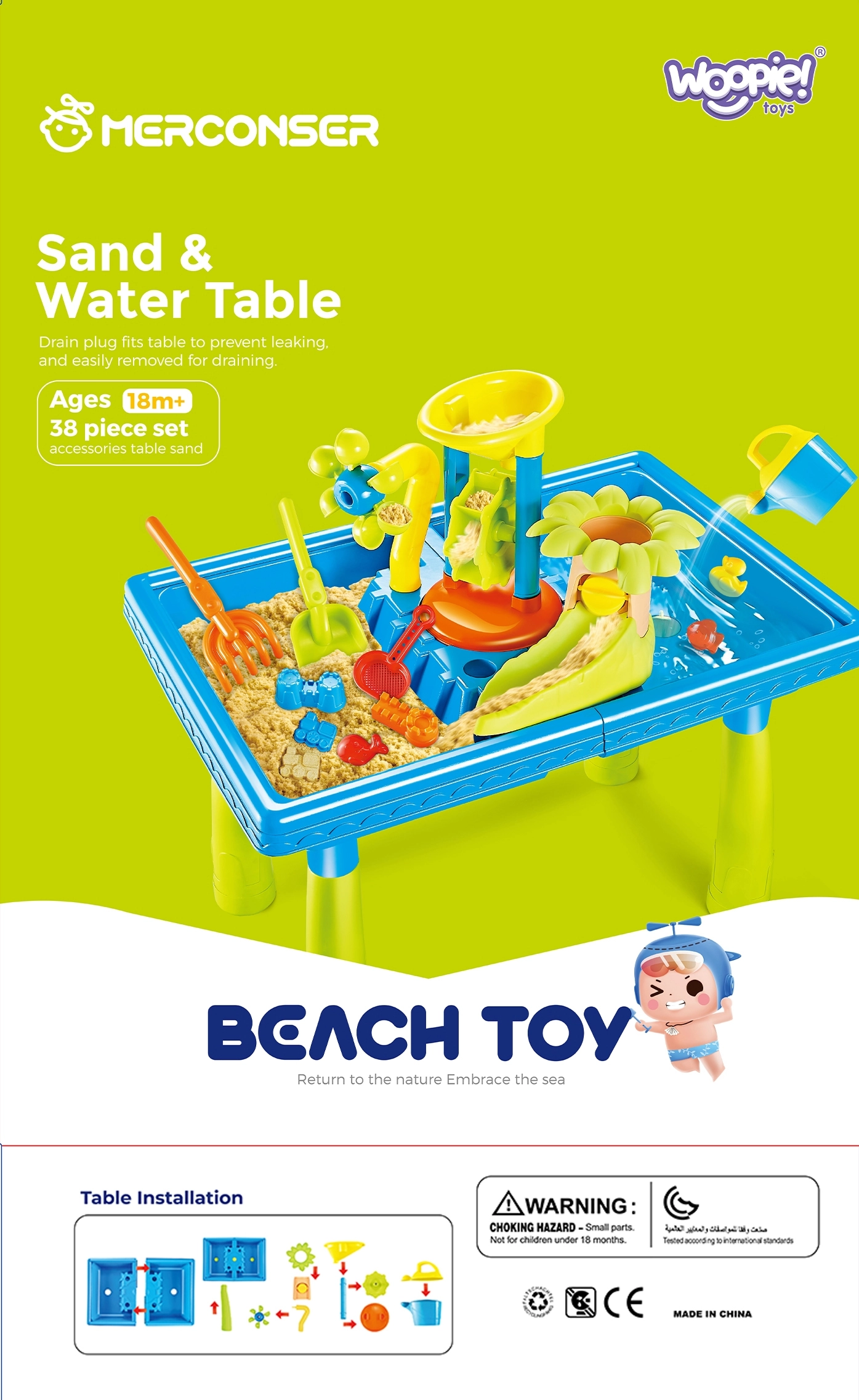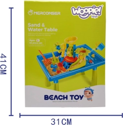 WOOPIE vandens ir smėlio stalas 2 viename – puikus pasirinkimas vaikų žaidimams su vandeniu ir smėliu. Komplekte yra 18 įvairių priedų, tokių kaip formelės, laistytuvas, malūnėliai, kastuvėliai ir sietelis. Stalas turi 2 atskiras dalis, kurias galima pripildyti vandeniu ir smėliu, todėl vaikai galės ilgai ir smagiai žaisti.
