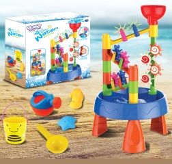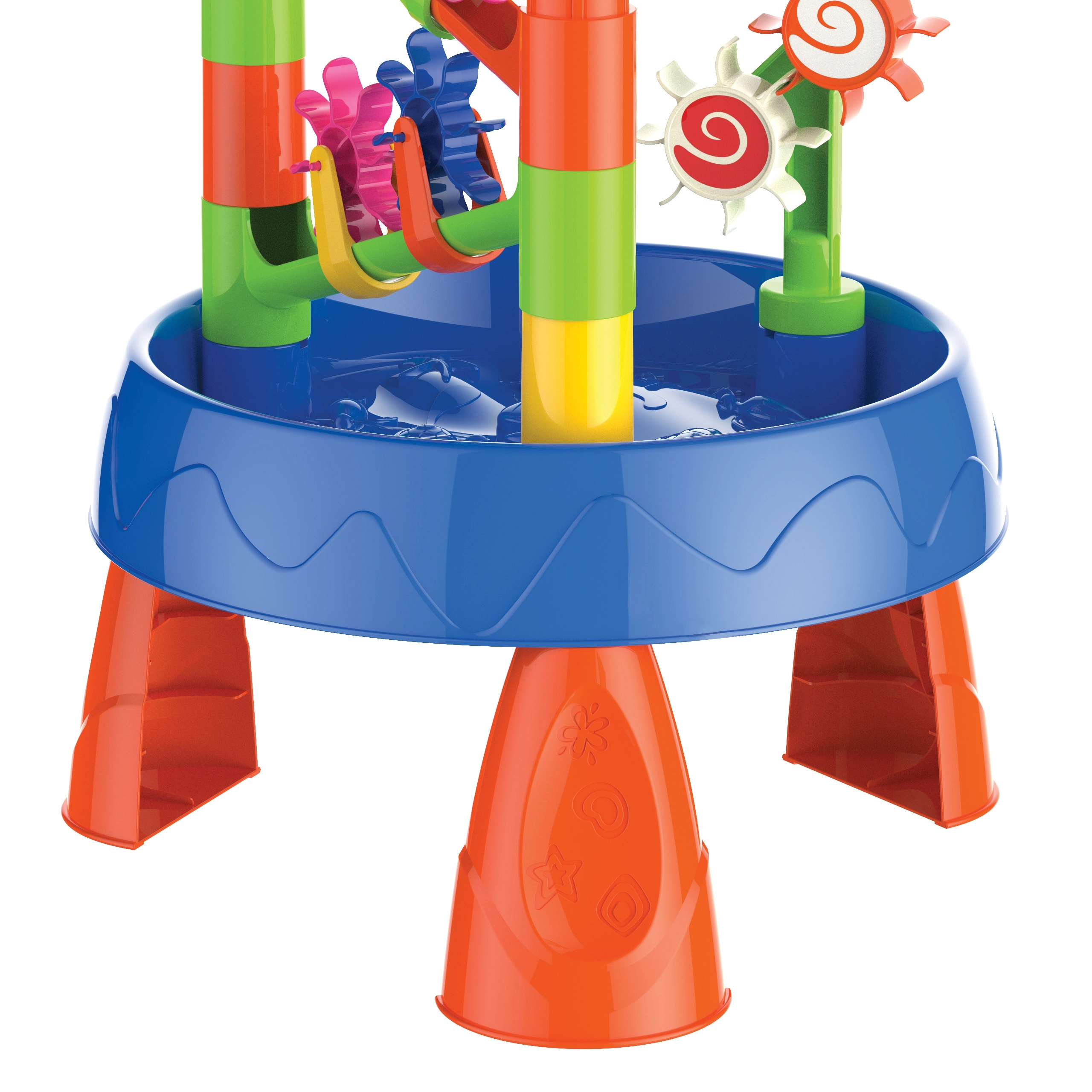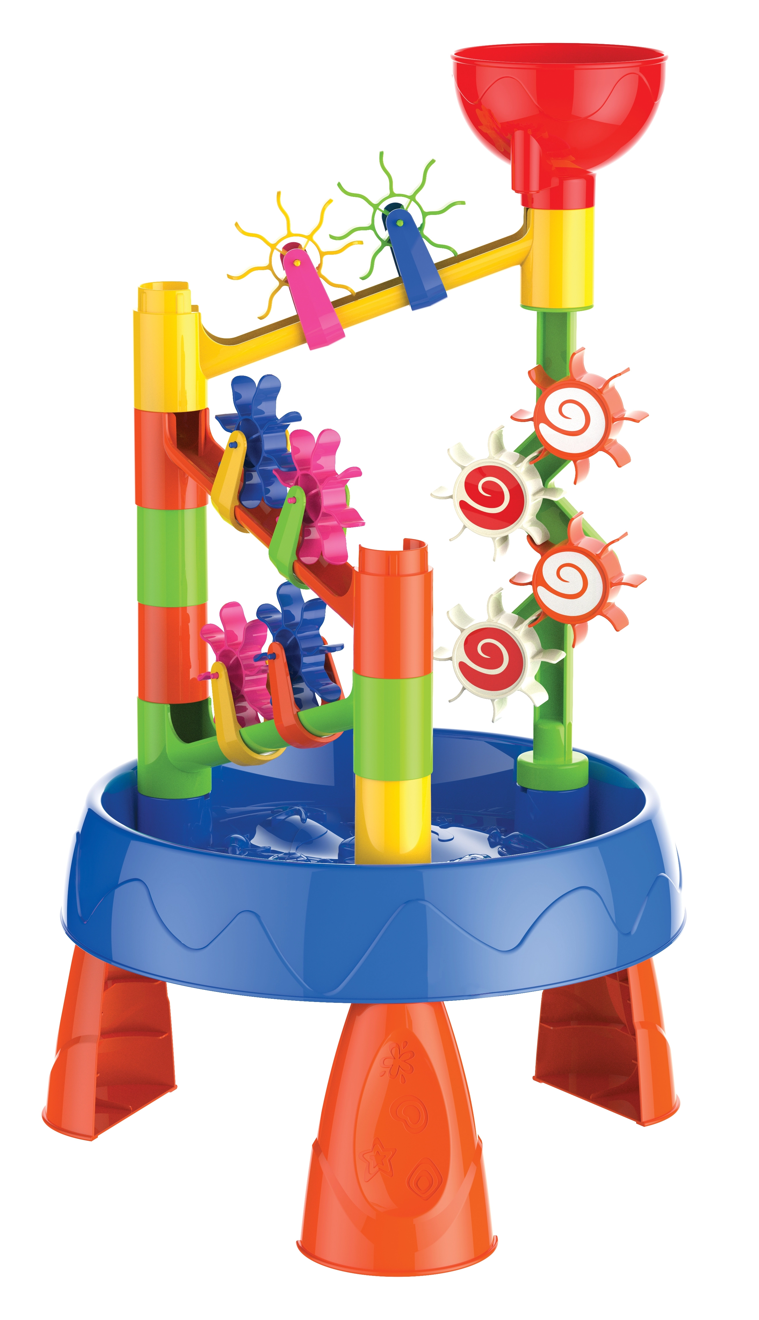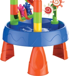 2-in-1 vandens ir smėlio stalas iš WOOPIE yra idealus žaislas žaidimams su vandeniu ir smėliu. Rinkinyje yra 5 priedai ir interaktyvūs malūnėliai, kurie sukasi įpylus vandens.