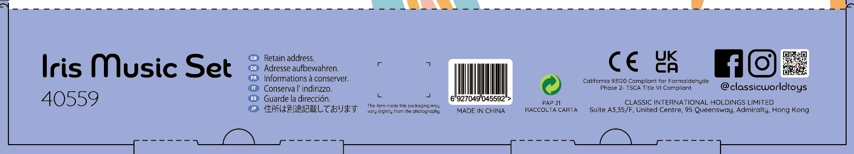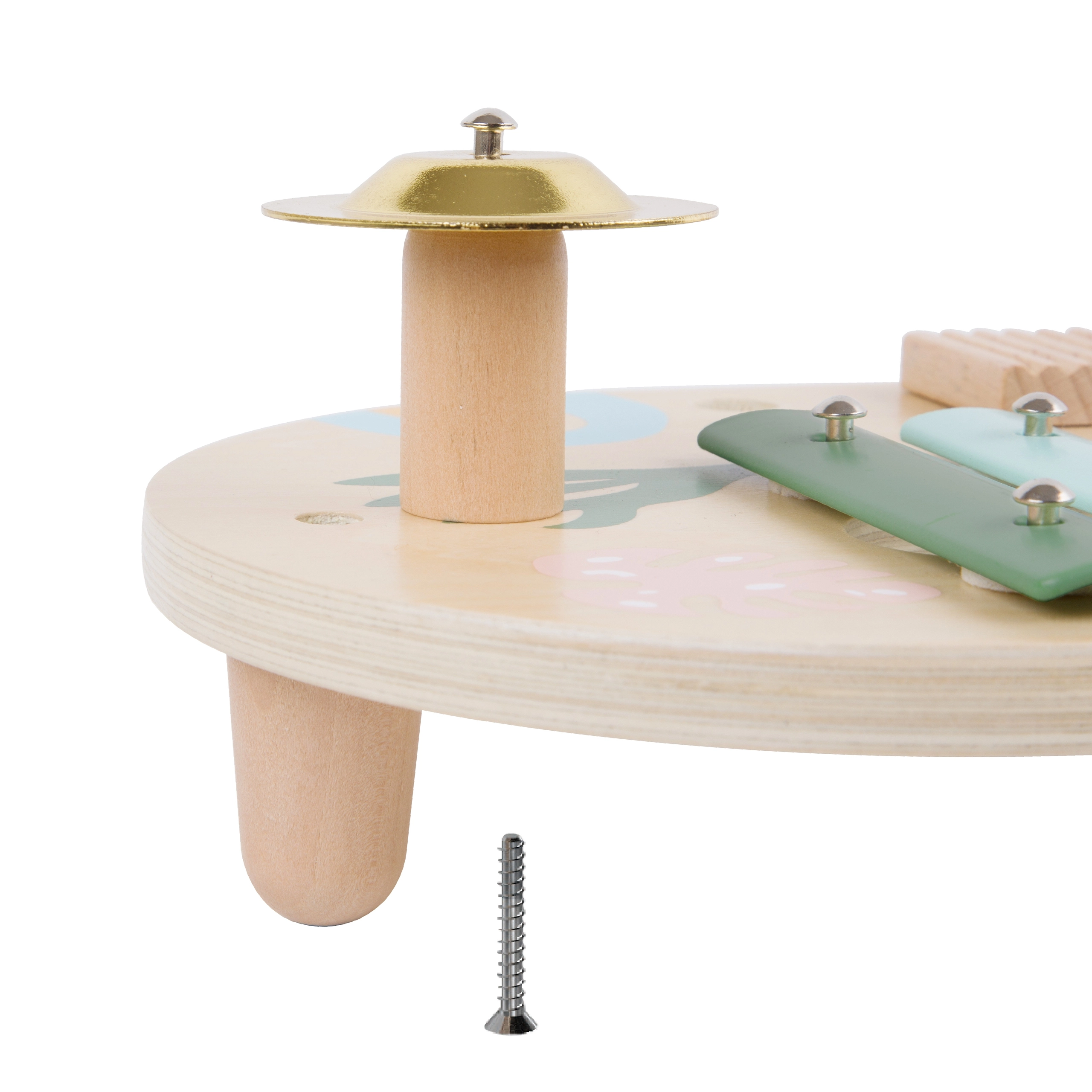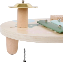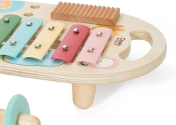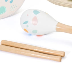 Šiame rinkinyje yra penki skirtingi muzikos instrumentai, puikiai tinkantys mažoms vaiko rankytėms. Kiekvienas instrumentas pagamintas iš kokybiškos medienos ir nudažytas netoksiškais dažais, kurie saugūs vaikams ir aplinkai.