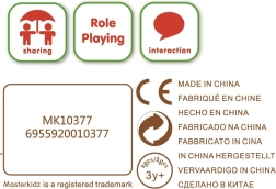 Puikus papildymas vaikų virtuvėlei. Vaikai lavina socialinius įgūdžius, bendravimą ir kasdienes situacijas, žaisdami virėjus ar pardavėjus.