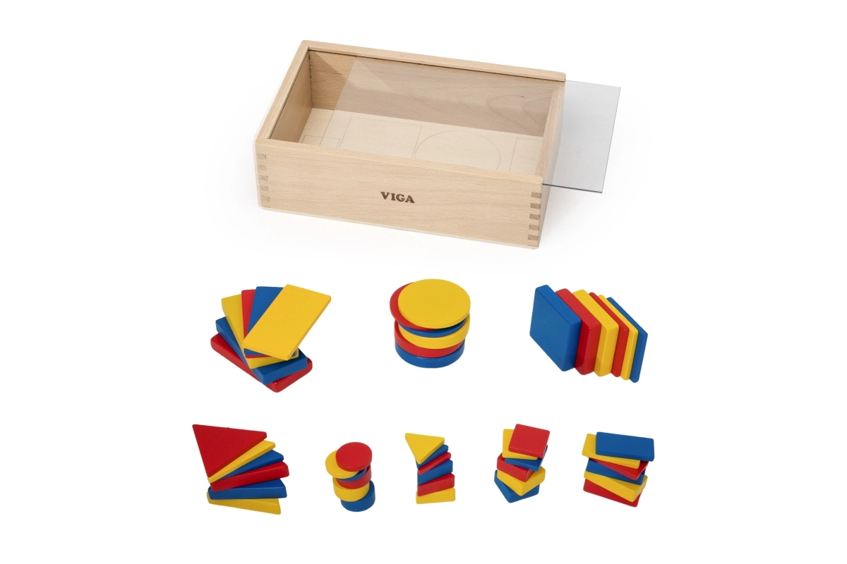 Šis Montessori medinių kaladėlių rinkinys suteikia vaikams smagų būdą pažinti formas ir spalvas. Lakuoto medžio dėkle yra 48 detalės pagrindinėmis spalvomis, kurias galima dėlioti, rūšiuoti ir derinti pagal pavyzdžius ar savo fantaziją. Puikiai tinka namams ir darželiams.