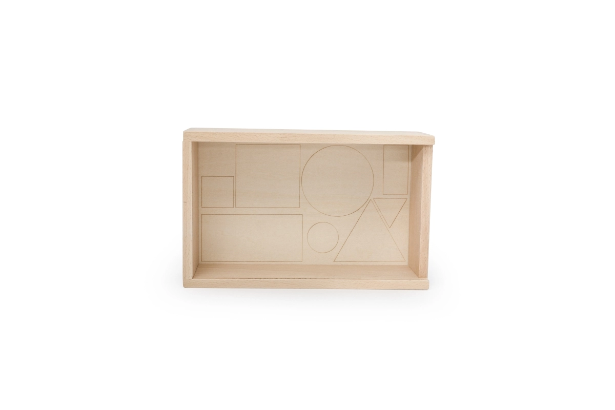 Kaladėlės laikomos patvariame mediniame dėkle, kur lengva palaikyti tvarką, todėl jos nepasimes ir žaislas visada bus paruoštas naudoti.