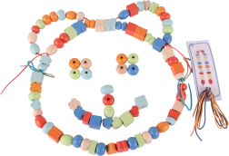 Spalvingas karoliukų rinkinys siūlo 96 detales kūrybiškam vėrimui. Vaikai gali kurti savo raštus ir tobulėti kaip jaunieji papuošalų stilistai.