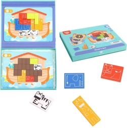 Atraskite Nojaus arkos pasakojimo žavesį ir kartu mankštinkite protą. Tooky Toy magnetinė dėlionė siūlo 30 skirtingo sudėtingumo užduočių: pagal pavyzdį užpildykite žaidimo lauką 10 medinių gyvūnėlių taip, kad neliktų tuščių vietų. Magnetai tvirtai laiko detales vietoje, todėl tai puikus pasirinkimas ir kelionėms.