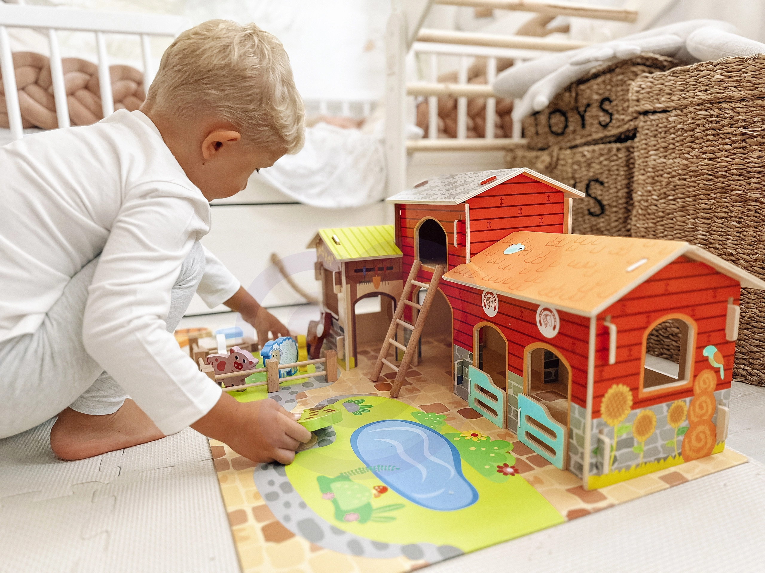 Pastatai, tvenkinys ir šešios žavios gyvūnėlių figūrėlės suteikia vaikams viską, ko reikia susikurti savo fermą ir begalėms istorijų.