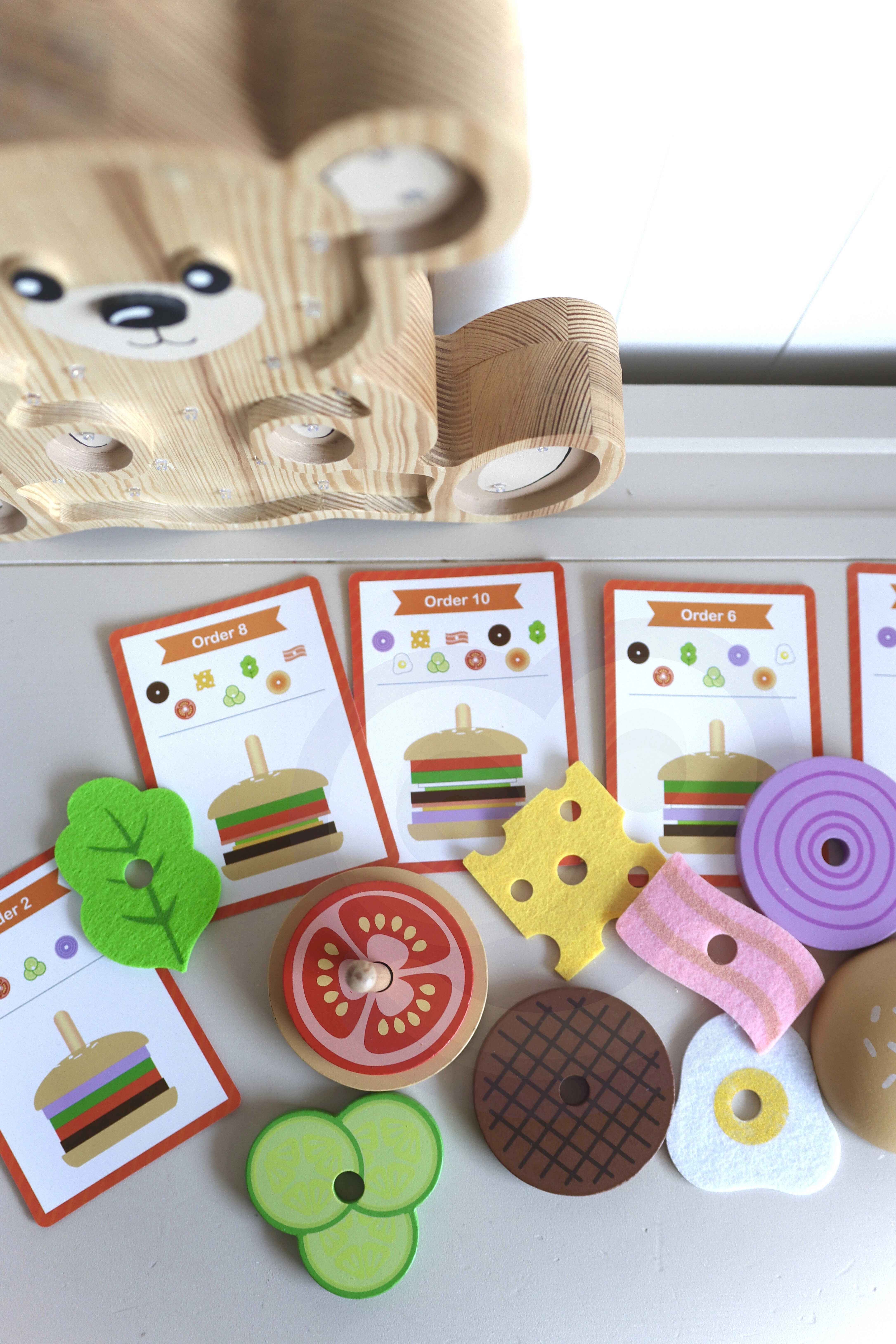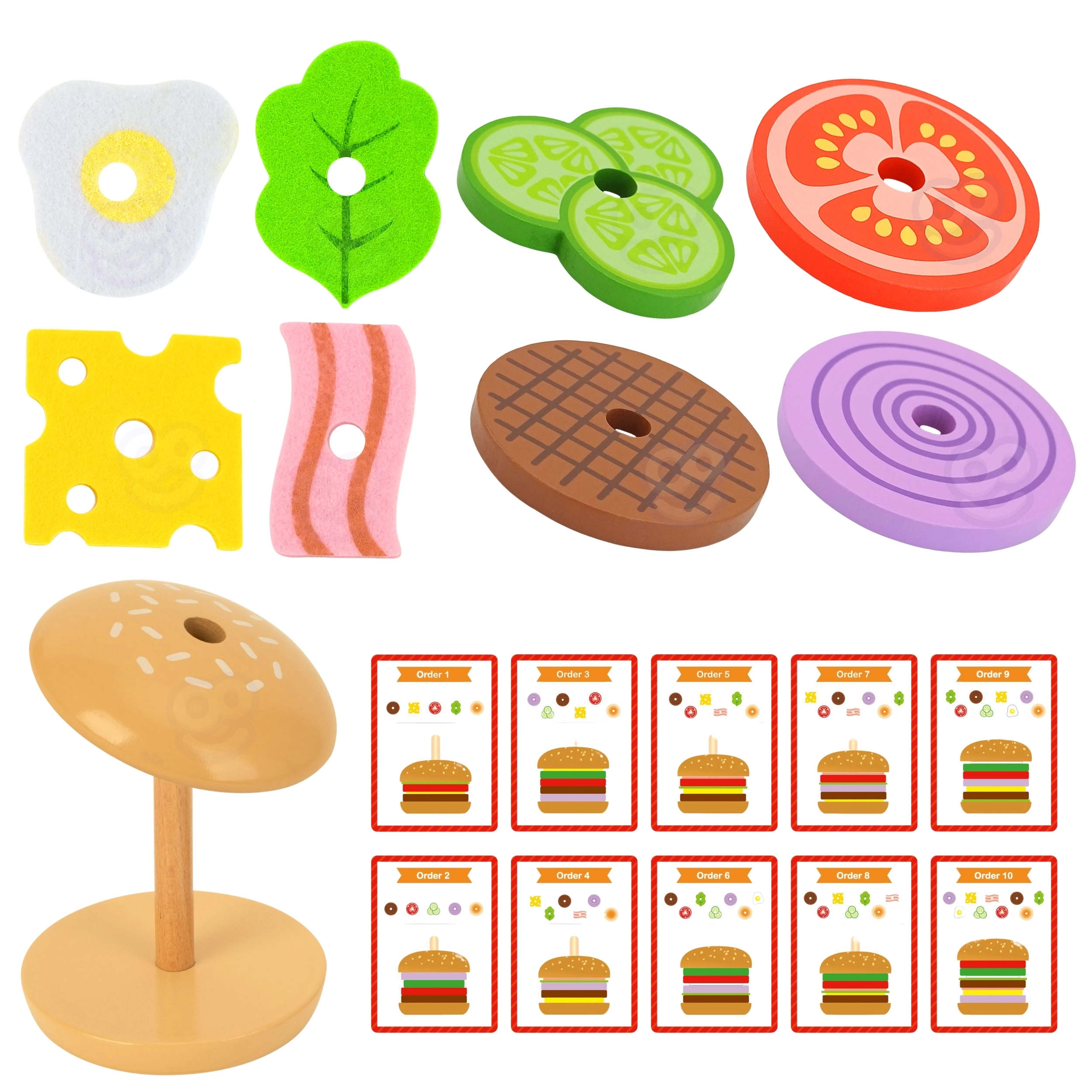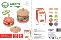 WOOPIE GREEN medinė burgerių dėlionė suteikia vaikams nuo 3 metų skanią mokymosi ir pramogos porciją. Vadovaudamiesi instrukcinėmis kortelėmis, mažieji virėjai parenka tinkamus ingredientus, palygina jų spalvą ir storumą ir sudėlioja teisinga seka. Lygiai taip pat lengvai jie gali kurti ir savo „receptus“, kurie lavina kūrybiškumą ir vaizduotę.