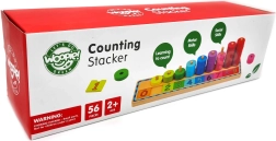 Medinė Montessori dėlionė Woopie Green dera natūralią, estetišką medžiagą su sumaniu dizainu skaičiavimui ir spalvoms mokytis. Spalvoti žiedeliai veriami ant stulpelių ir derinami su ant pagrindo atspausdintais skaičiais, kas natūraliai ugdo matematinį suvokimą ir santykį „daugiau–mažiau“.