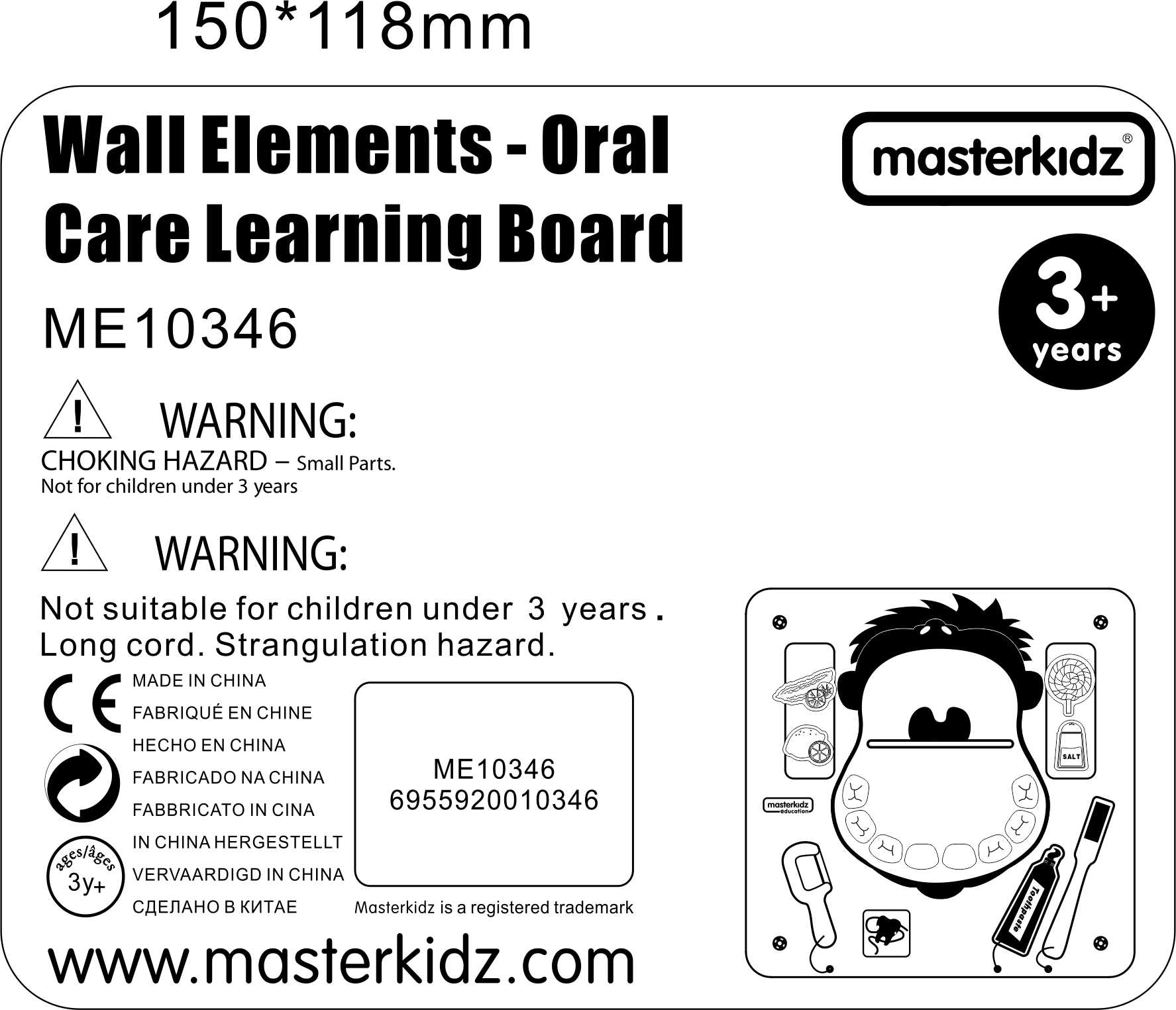 Smagi ir edukacinė Masterkidz sieninė lentelė padeda vaikams įtvirtinti tinkamą dantų higieną. Ji moko vaikus teisingai valytis dantis, naudoti dantų siūlą ir atpažinti pagrindinius skonius (saldų, sūrų, rūgštų ir kartų). Patvari medinė konstrukcija idealiai tinka darželiams, vaikų žaidimų zonoms ir namams.