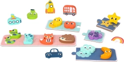 Šis žaidimas ne tik linksmina, bet ir moko per spalvingas gyvūnų, vaisių ir transporto priemonių formas.