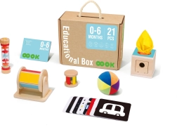 TOOKY TOY pristato medinę edukacinę 6-i-1 dėžutę, sukurtą visapusiškam jūsų vaiko ugdymui. Šioje dėžutėje yra įvairių žaidimų, kurie žadina susidomėjimą ir mokymąsi kūdikiams nuo 0 iki 6 mėnesių.