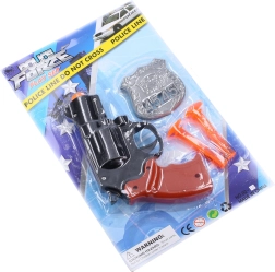 Tapk mažuoju įstatymo sergėtoju su šiuo policijos rinkiniu! Vaikiškas 13 cm ilgio pistoletas, du šoviniai ir policijos ženklelis lavina vaizduotę, vaidybinius žaidimus ir saugią pramogą vaikams nuo 3 metų.