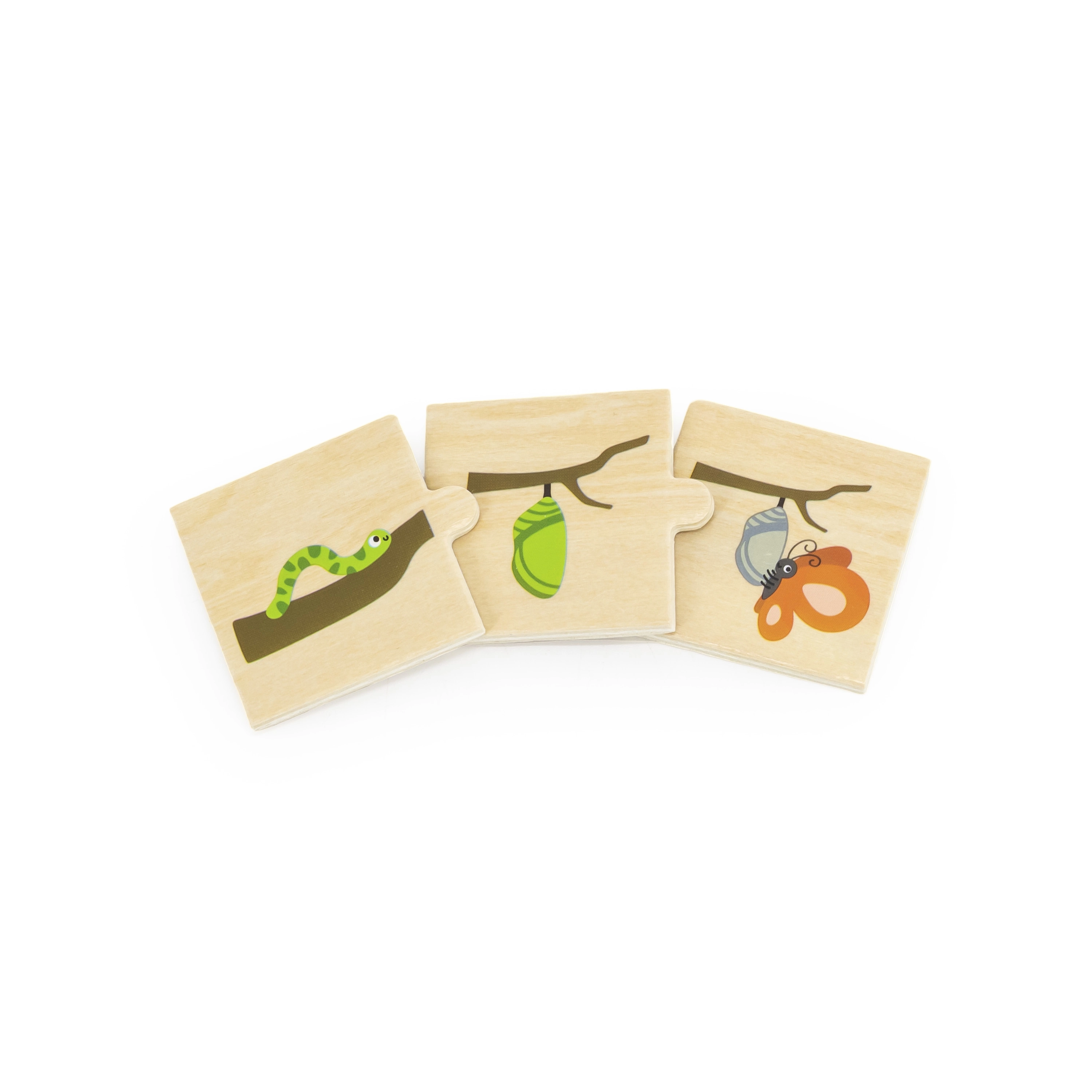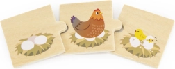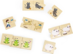 Detalės pagamintos iš buko medienos ir padengtos netoksiškais dažais, todėl atlaiko kasdienį žaidimą ir yra saugios net patiems mažiausiems. Dėliodami vaikai treniruoja smulkiąją motoriką, pastabumą ir sąsajų tarp paveikslėlių suvokimą. Puikiai tinka bendrai tėvų ir vaiko veiklai arba savarankiškam atradimui.