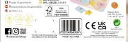 Kiekvienas geometrinis elementas nudažytas pastelinėmis spalvomis, todėl lengviau atpažinti formas ir žaislas tampa patrauklesnis vaikams.