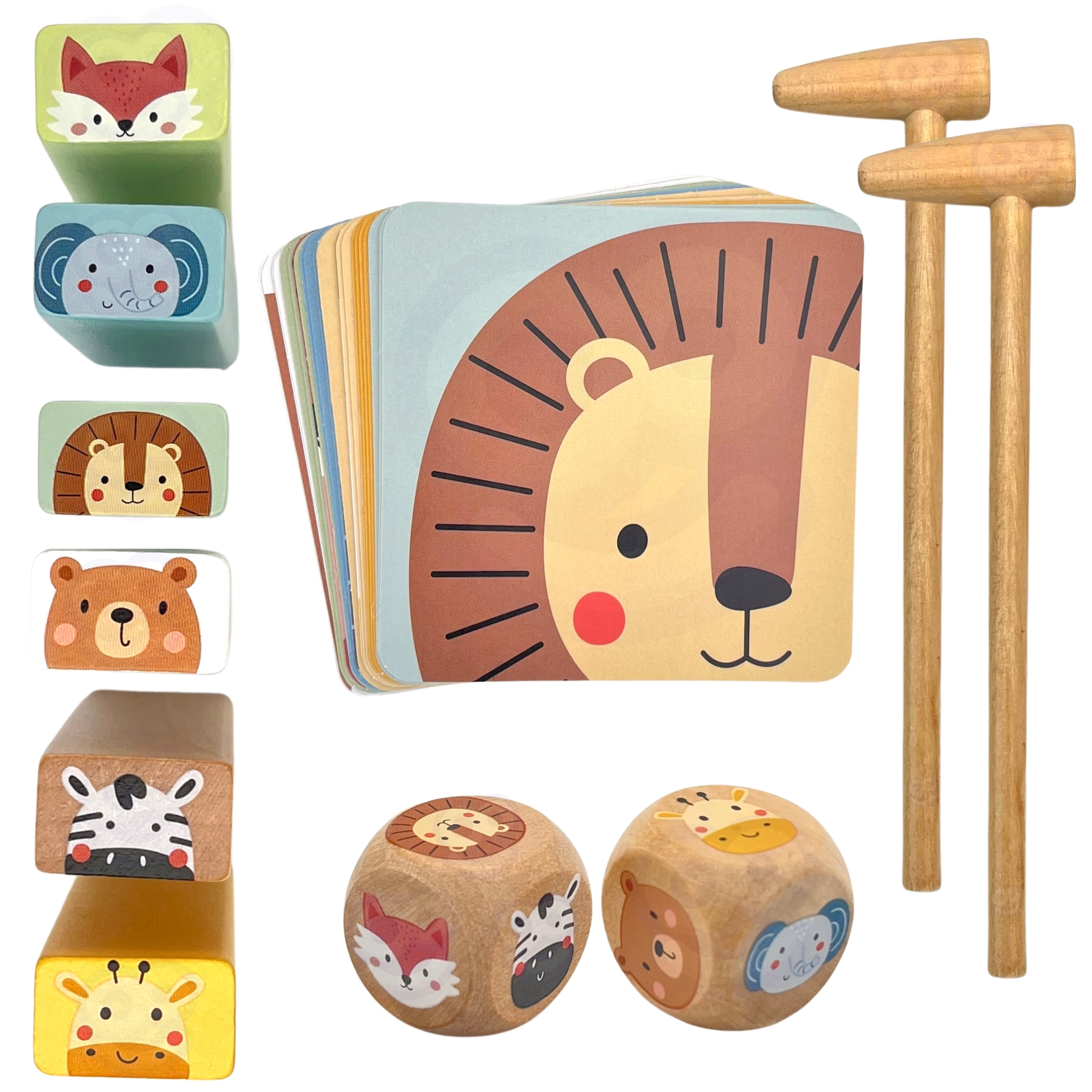 - 2 kauliukus su gyvūnėlių paveikslėliais