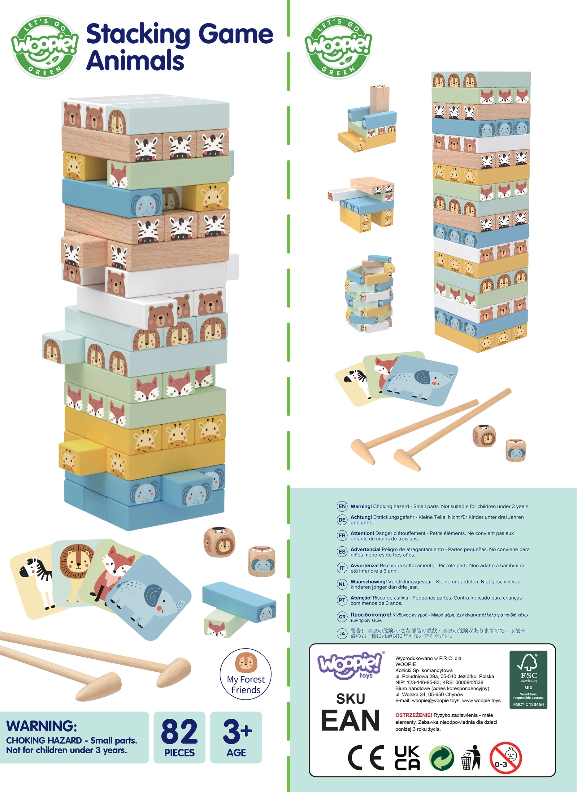 Medinis žaidimas Drebančių bokštas iš WOOPRIE yra puikus pasirinkimas jūsų vaikų smulkiajai motorikai lavinti ir smagiai pramogai! Rinkinyje – 82 patvarios medinės detalės pastelinių spalvų su gyvūnėlių lipdukais. Skatina strateginį mąstymą ir susikaupimą.