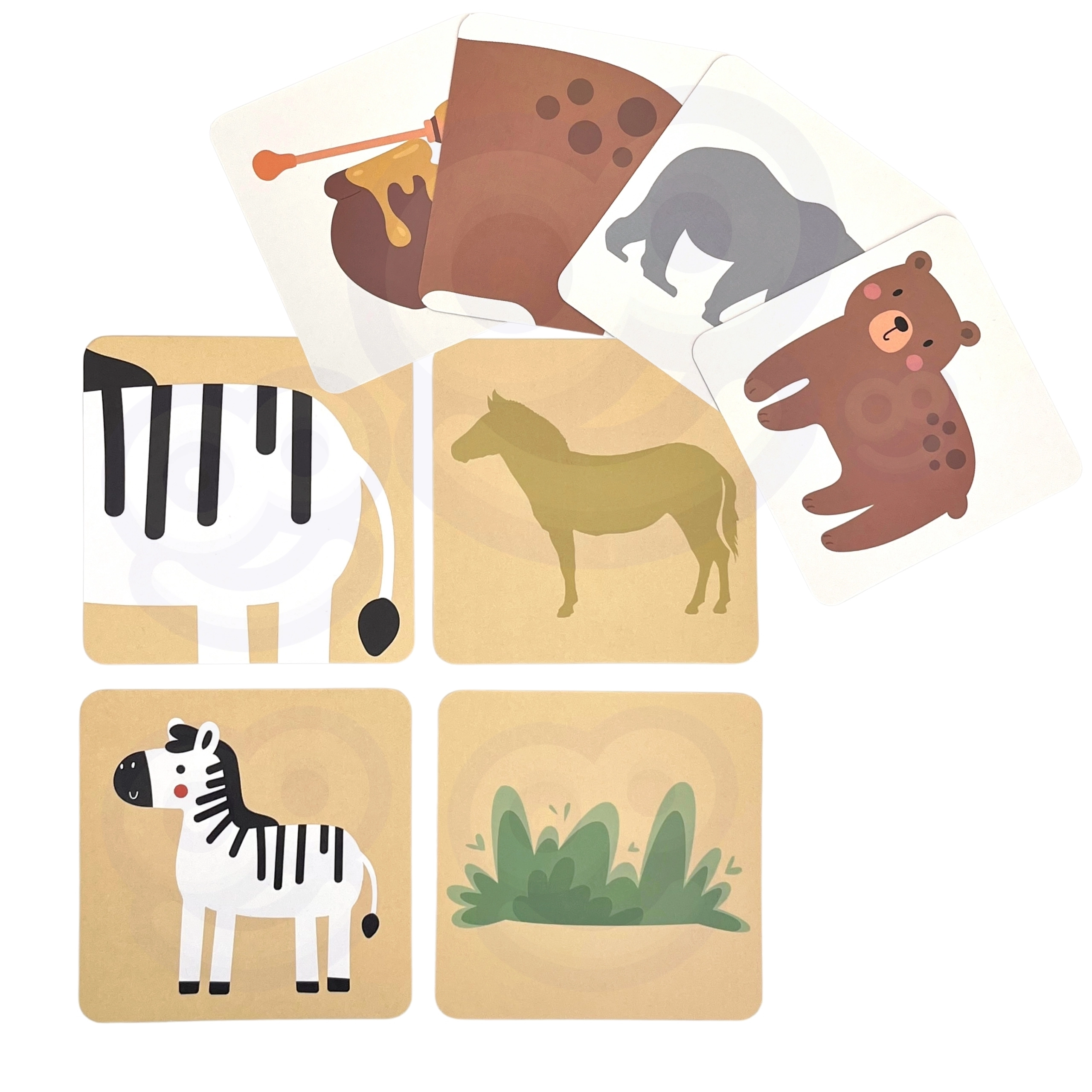 - Žaidimas su kortelėmis: žaidėjai turi susieti kortelėse esančius gyvūnus su atitinkamais paveikslėliais ar šešėliais.