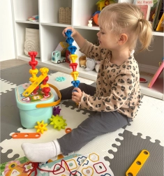 Ši dėžutė siūlo 12 skirtingų funkcijų įgūdžiams lavinti – nuo spalvų ir formų pažinimo iki 3D konstrukcijų kūrimo.