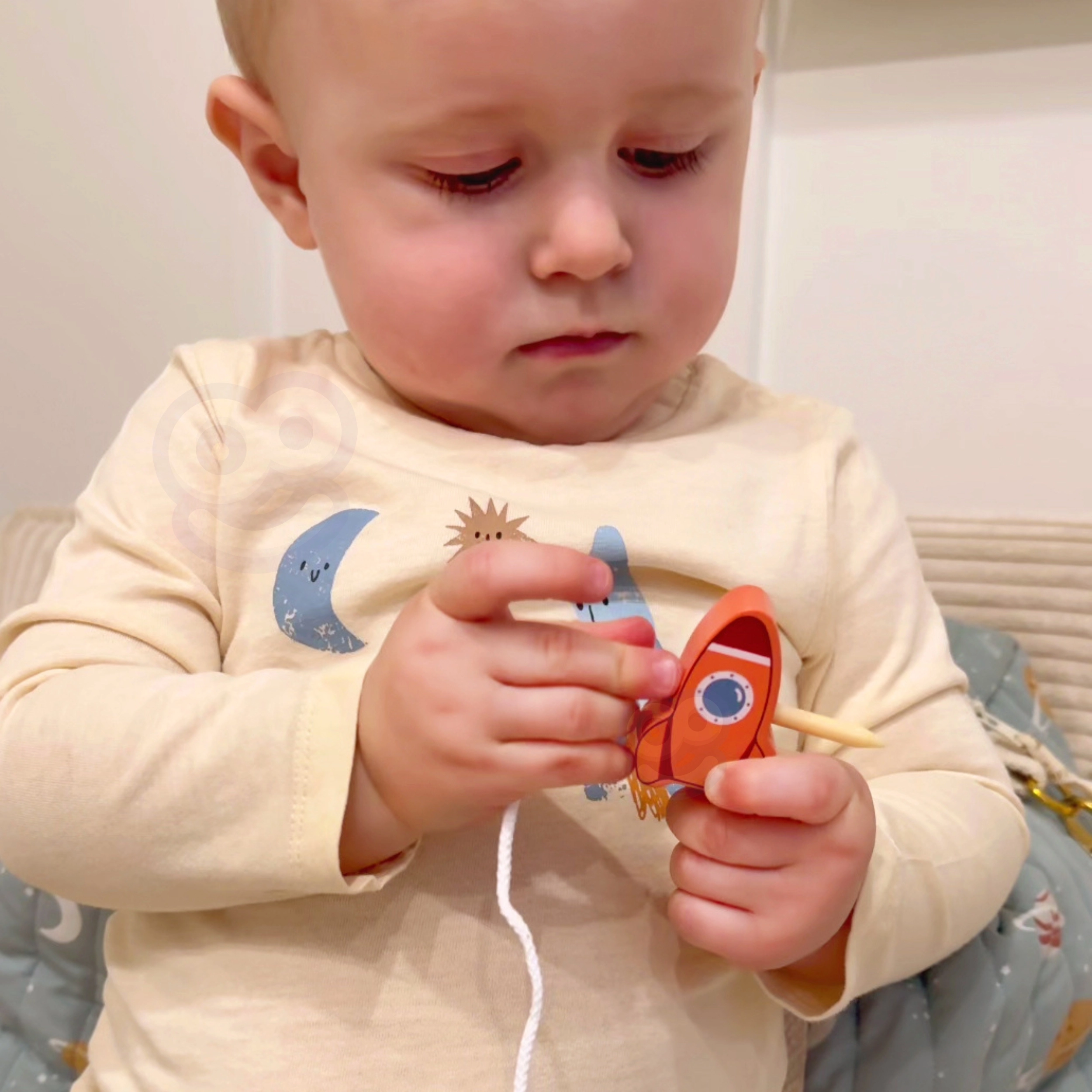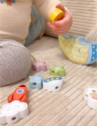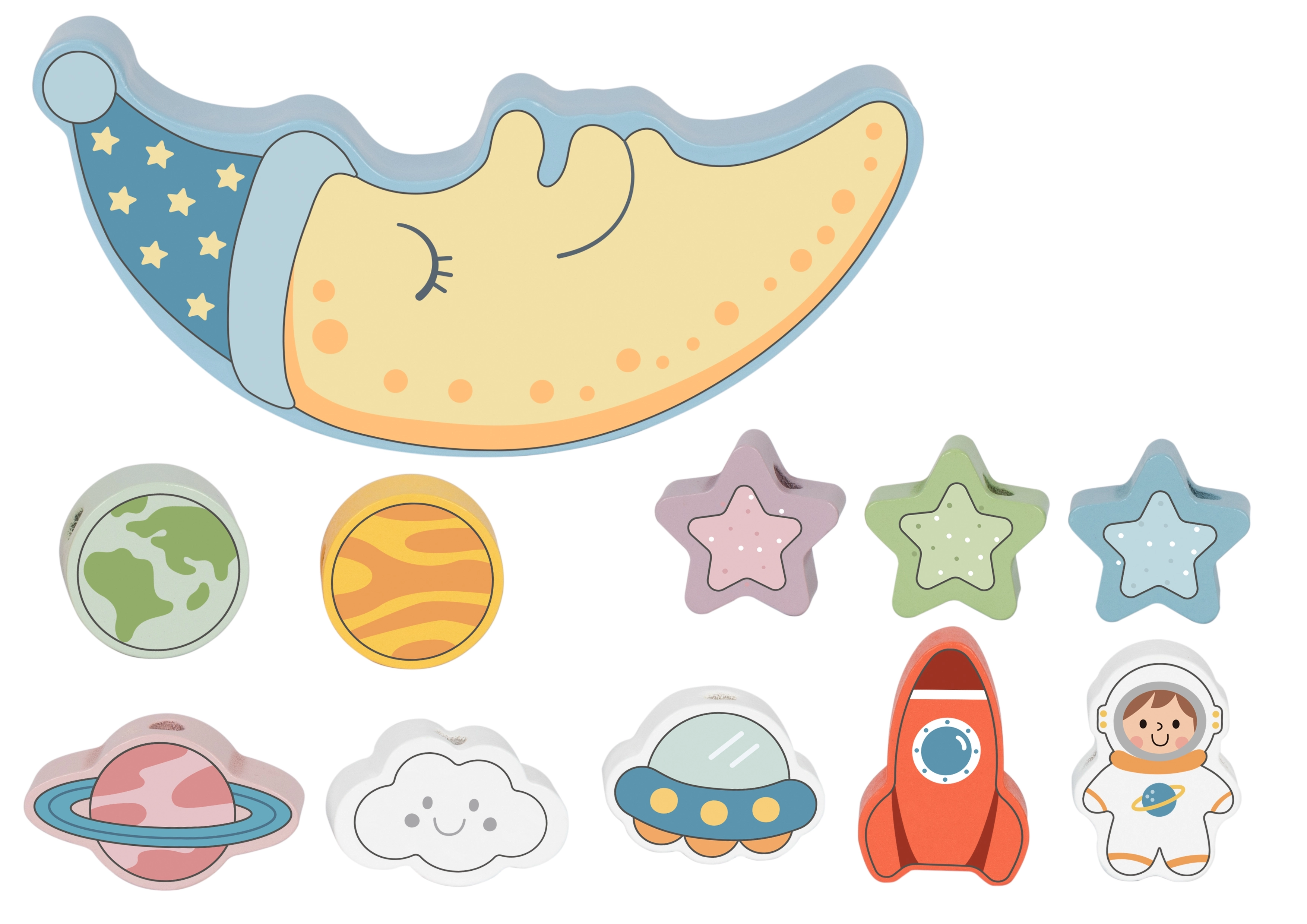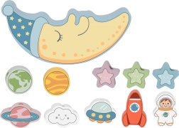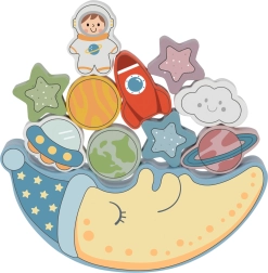 Vaikai gali dėlioti kosminius blokelius ant mieguisto mėnulio ir lavinti tikslumą bei kantrybę.