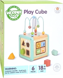 Medinis aktyvus kubas WOOPIE GREEN švelnių pastelinių spalvų derina pramogas ir mokymąsi viename. Jame yra karoliukų labirintas, formų rūšiuoklis, pasukami blokeliai su gyvūnais, dantračiai ir stumdomi elementai, skirti smulkiajai motorikai, logikai ir koordinacijai lavinti. Saugus dizainas su glotniais kraštais ir kokybiška mediena – idealiai tinka vaikams nuo 18 mėnesių ir kaip puiki dovana.